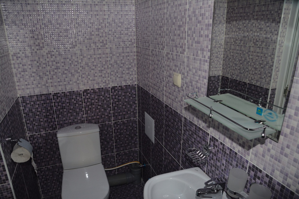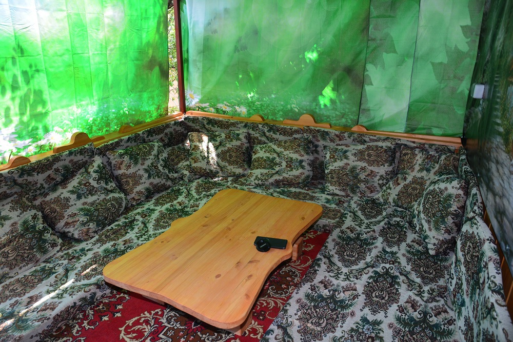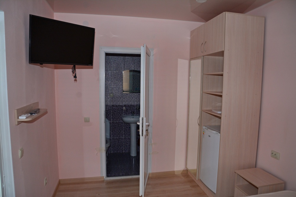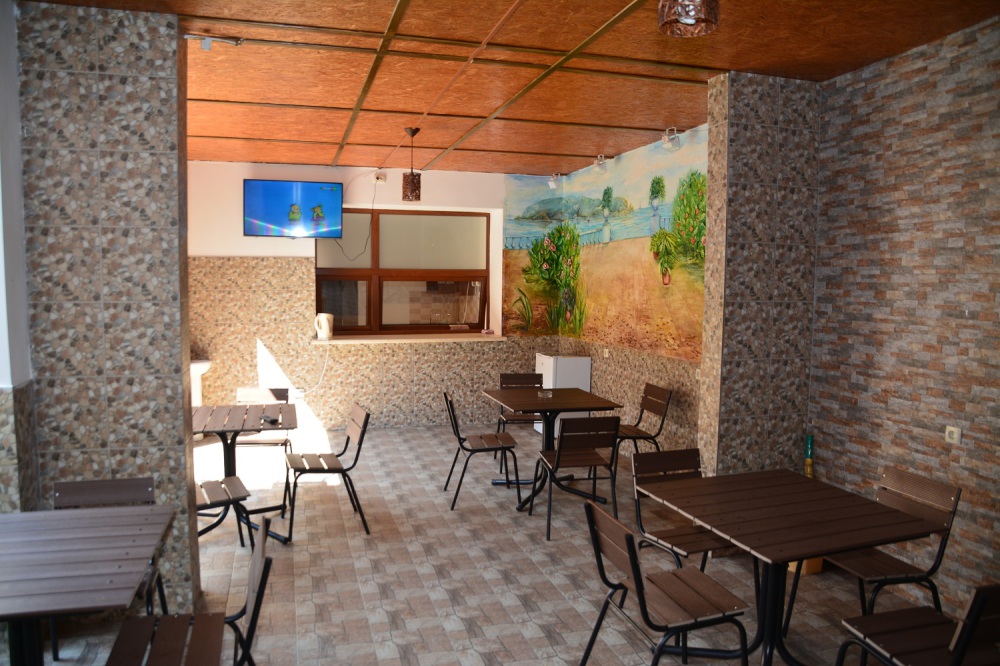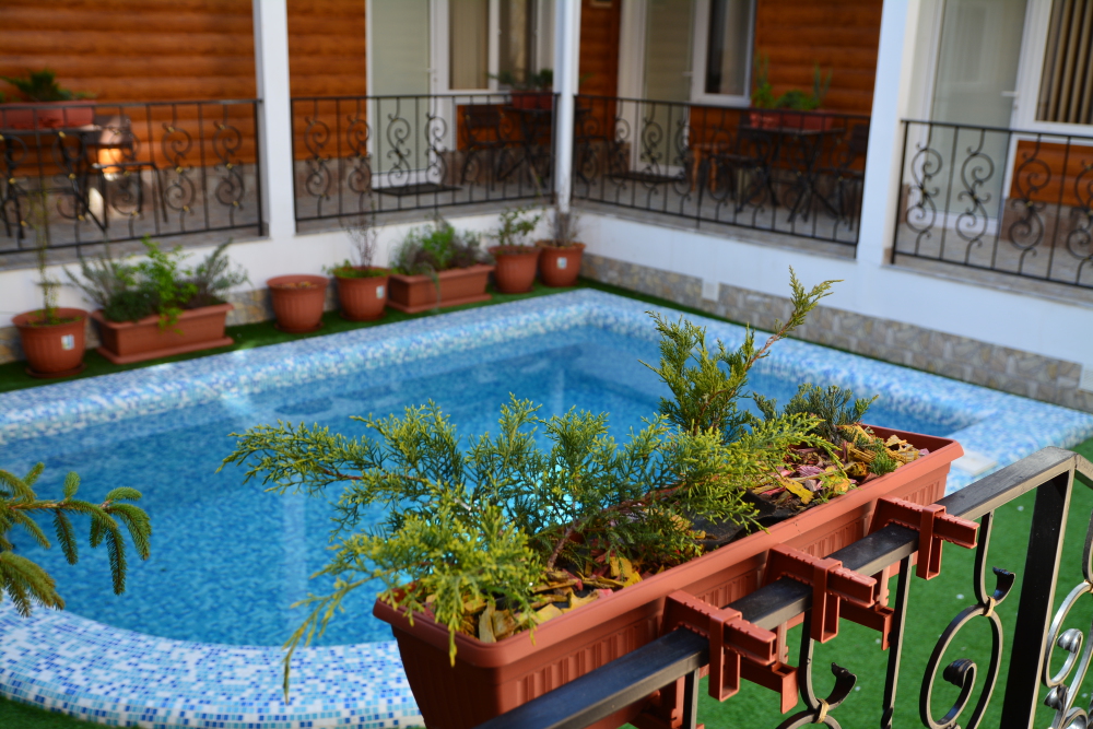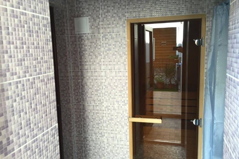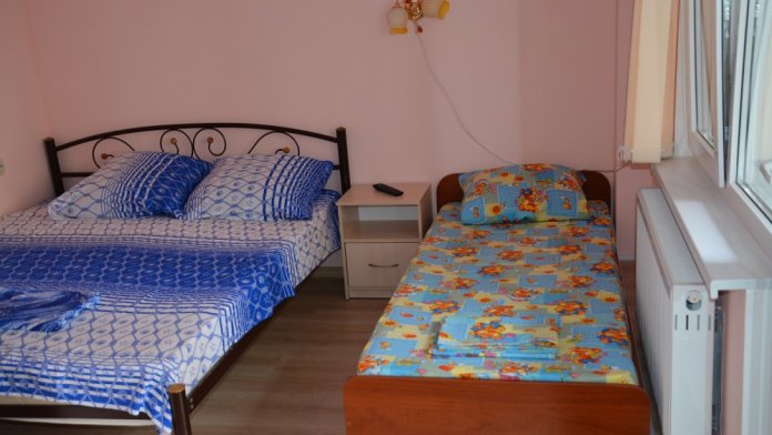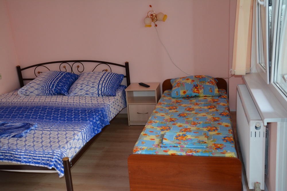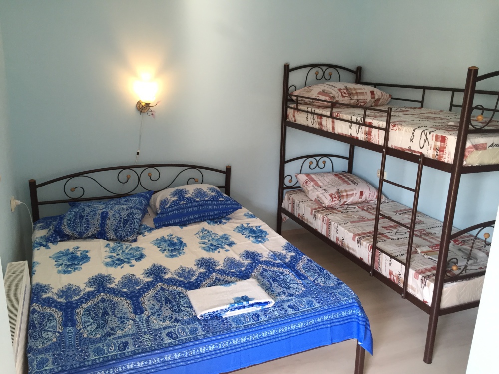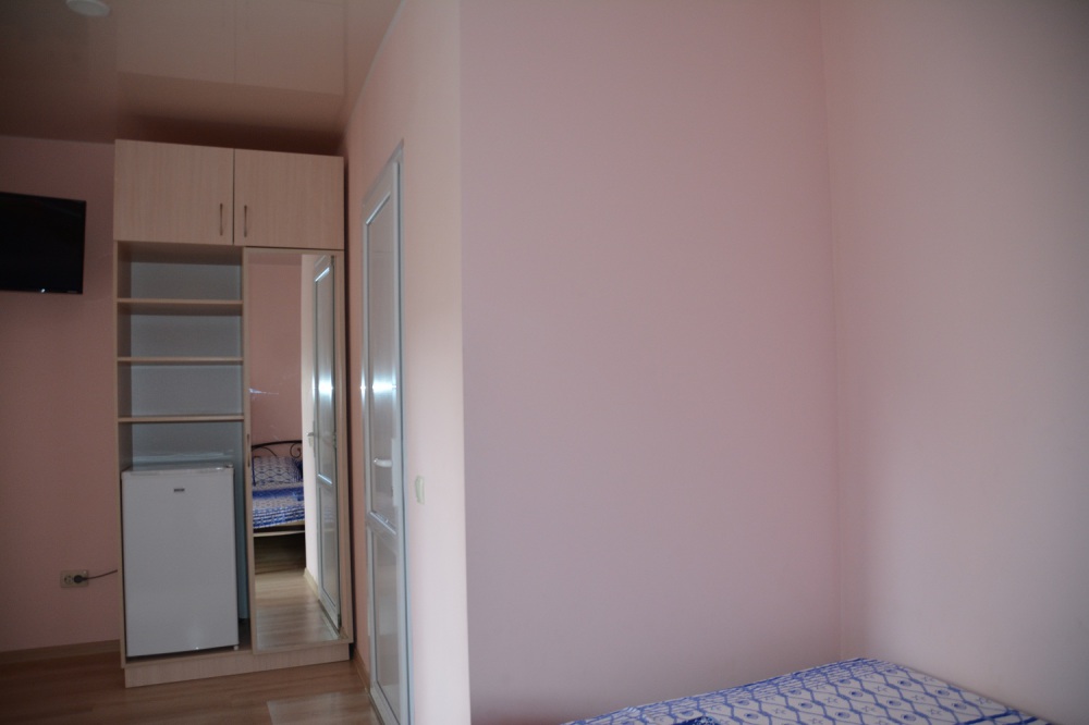 Территория дома закрытая, на территории есть: бассейн, общая кухня, мангал, сауна, зона отдыха со столиками и детский уголок. Поселиться в доме можно в 2,3 и 4-местных комнатах. В каждой комнате есть душ, туалет, кондиционер, холодильник и телевизор.