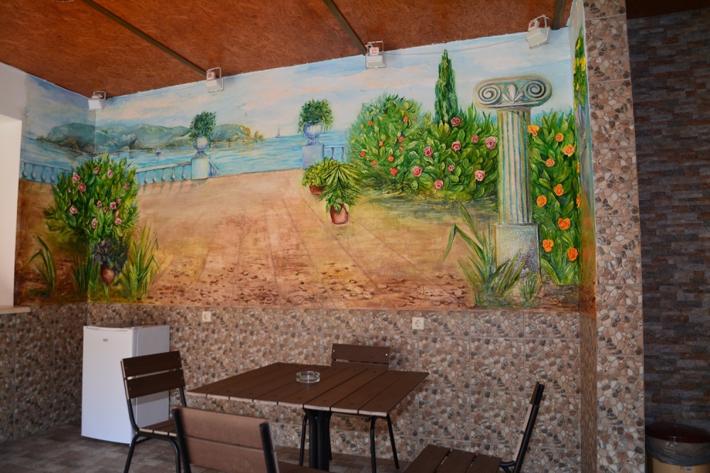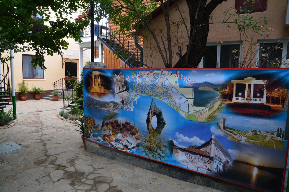 Район, в котором находится дом тихий, здесь нет многоэтажных зданий. Вблизи от дома в 3 минутах находятся магазин, кафе и парк с детскими развлечениями. Рынок, Черноморская набережная с различными кафешками и барами, Феодосийский стадион Кристалл находятся в 5-7 минутах от гостевого дома.