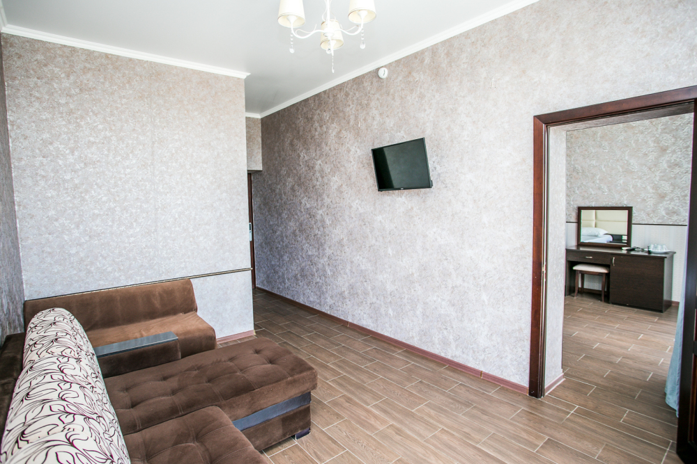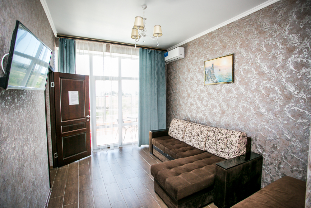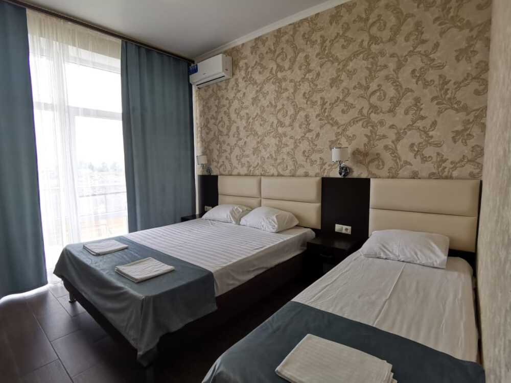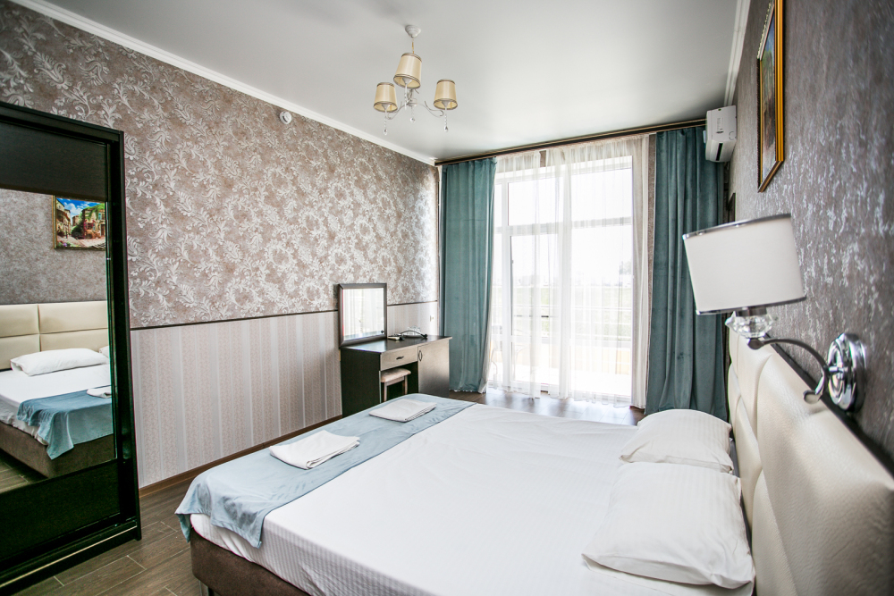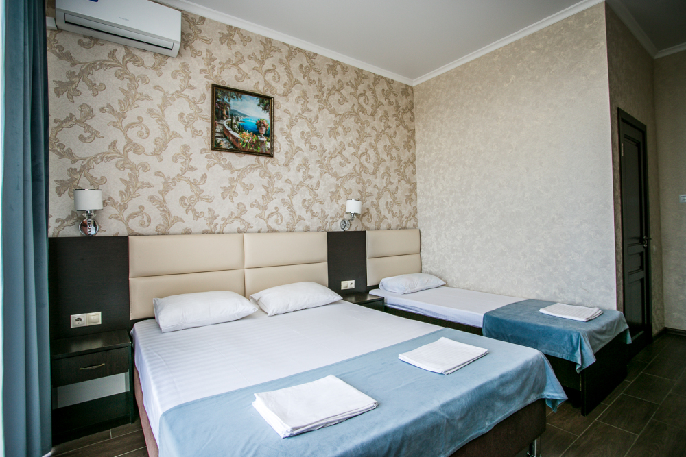 Гостям предлагается проживание в 2,3 и 4-местных номерах со всеми удобствами и собственными балконами с местами для отдыха. Есть двухкомнатные номера. Большинство номеров с видом на море.