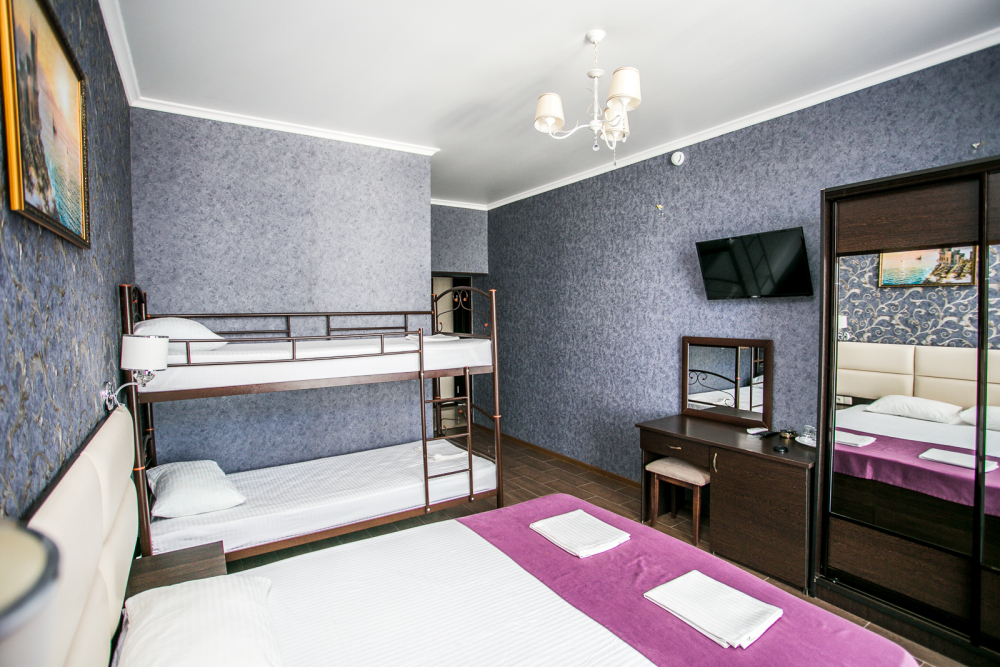 Номера располагаются на1, 2 и 3 этаже и рассчитаны на 4 человека.