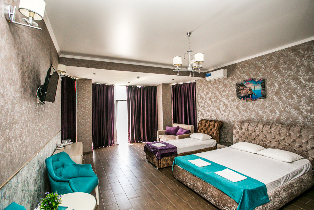 Отель «Gold» - это трехэтажный, современный отель с бассейном, расположенный в 150 метрах от Золотого пляжа Феодосии.