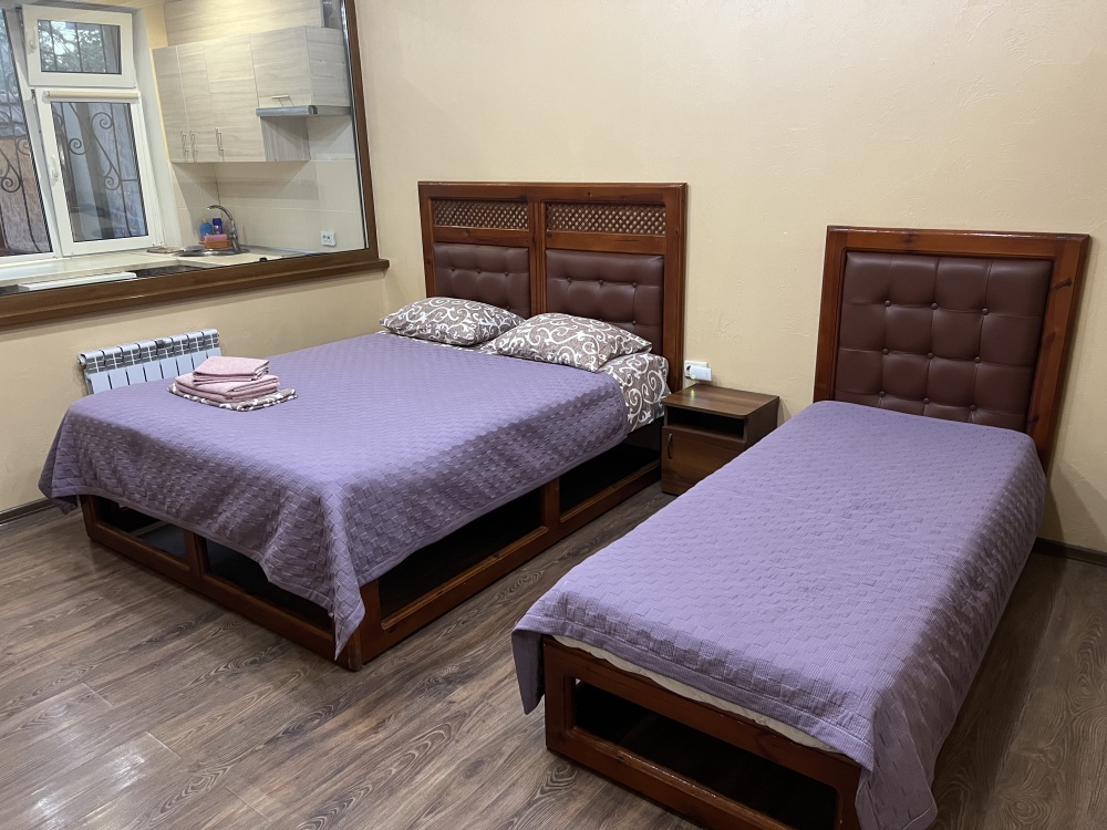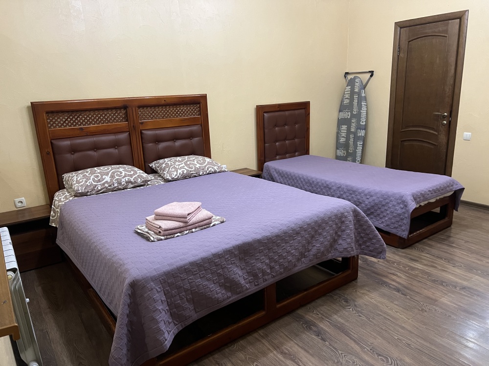 • 1 двуспальная кровать, 1 односпальная кровать, детская кроватка (по запросу)