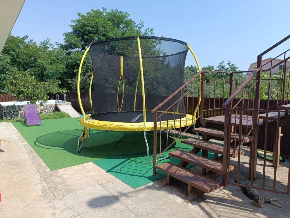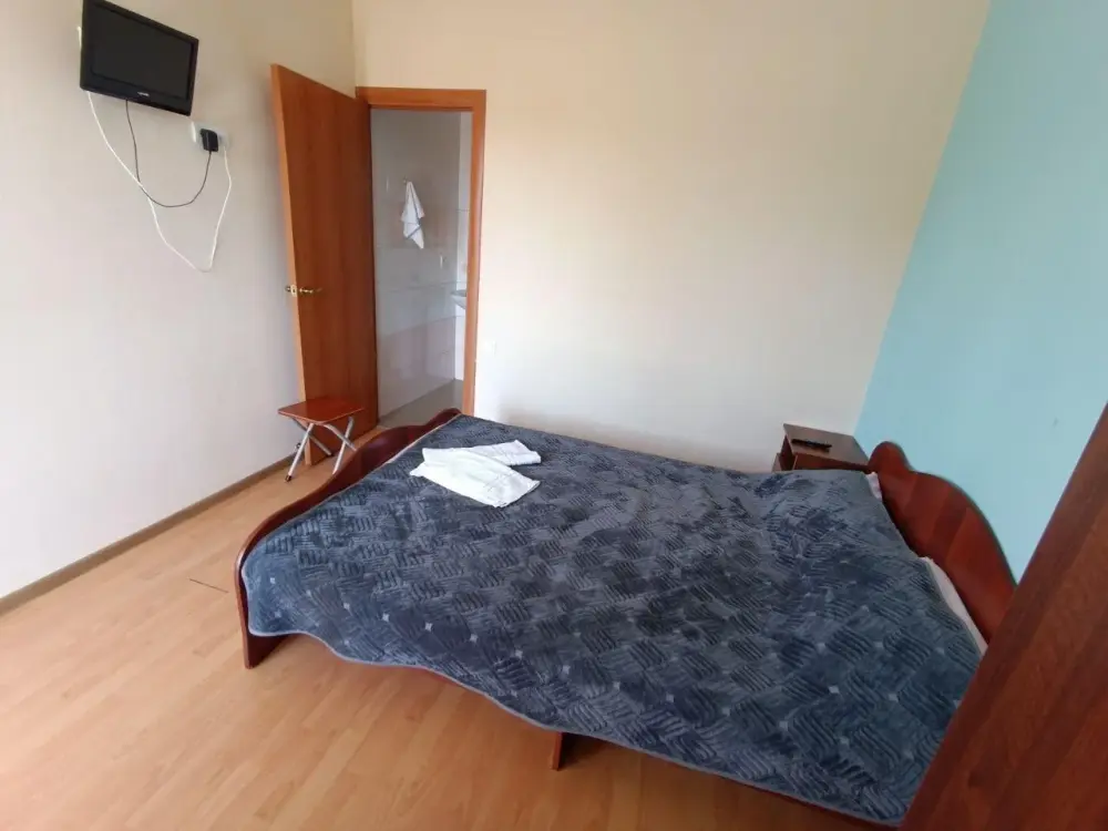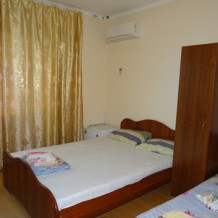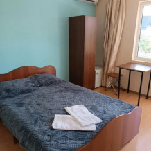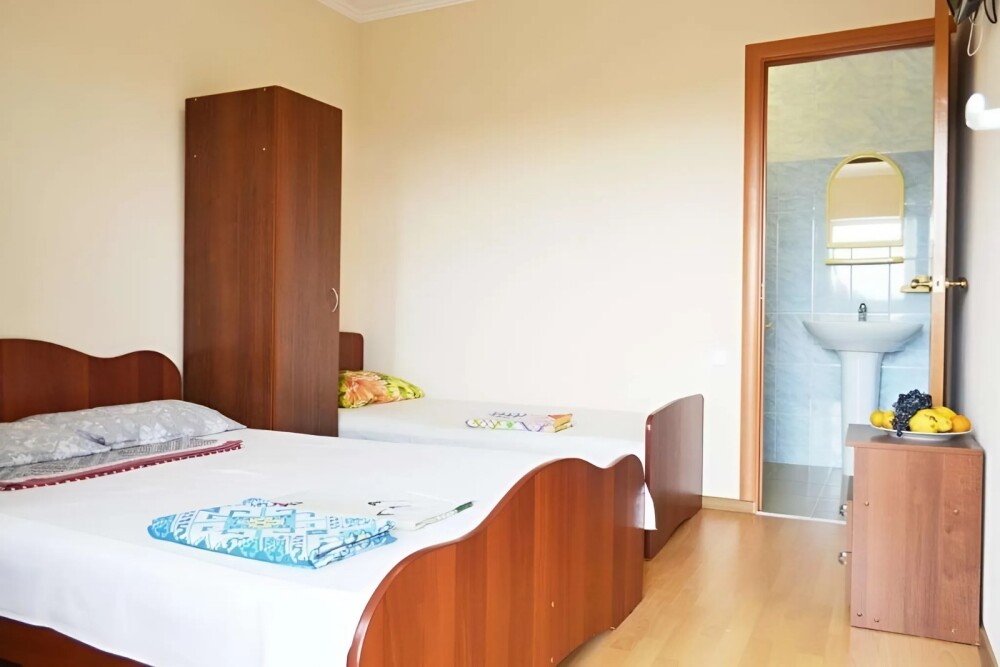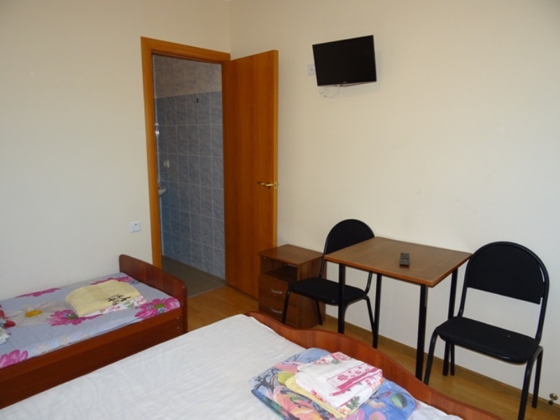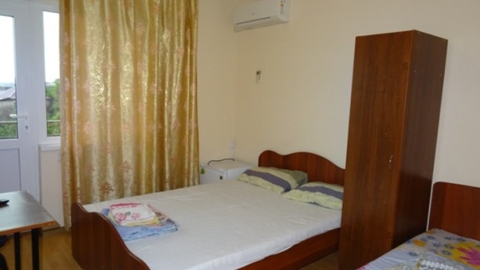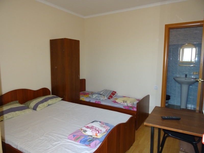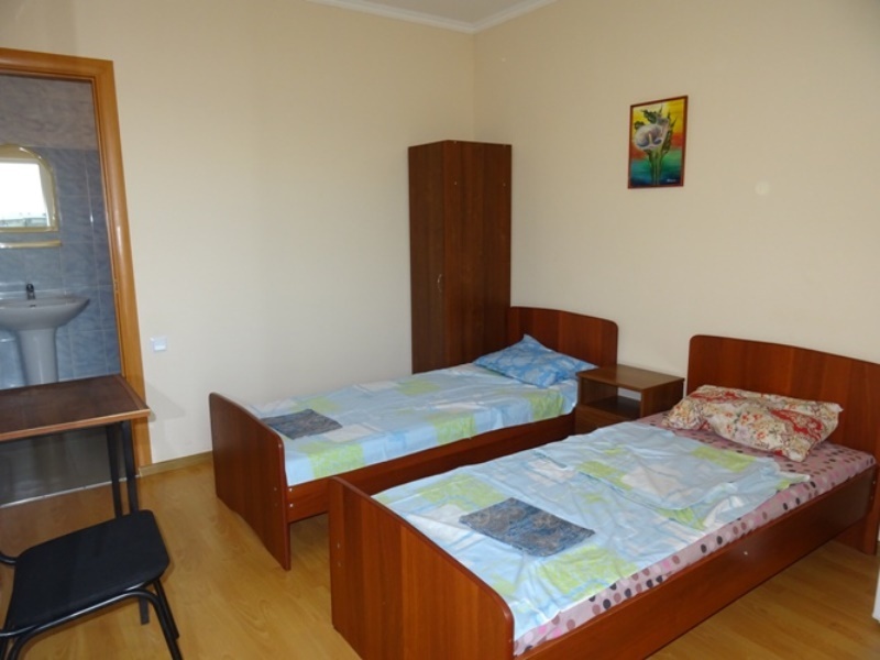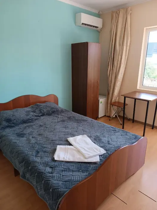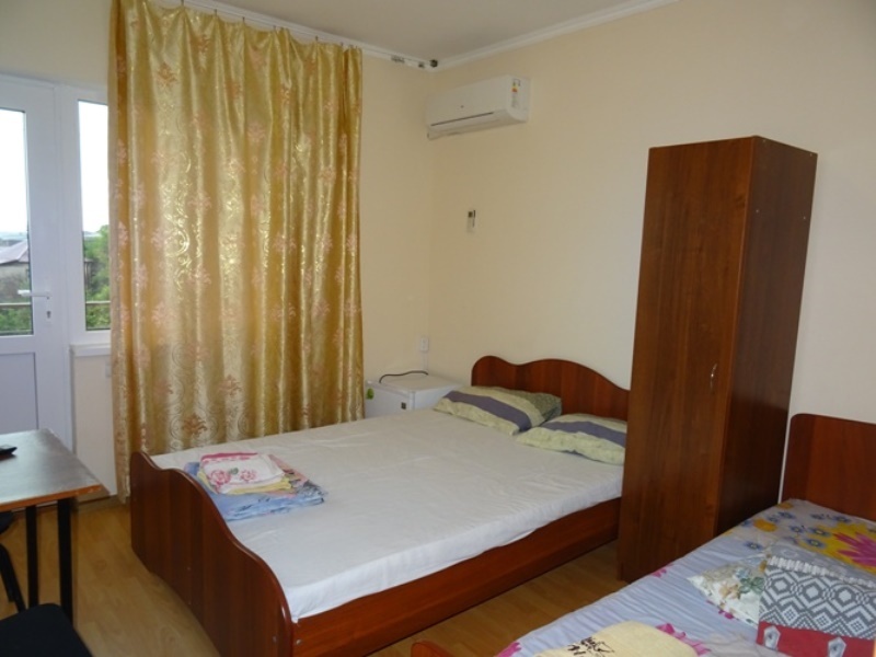 Для наших гостей мы предлагаем уютные номера разной вместимости, со всем необходимым для комфортного отдыха. В каждом номере ванная комната с душем, телевизор, кондиционер, холодильник, фен, полотенца. Есть русская баня и бассейн с морской водой, детская площадка с батутом, на всей территории работает бесплатный Wi-Fi.