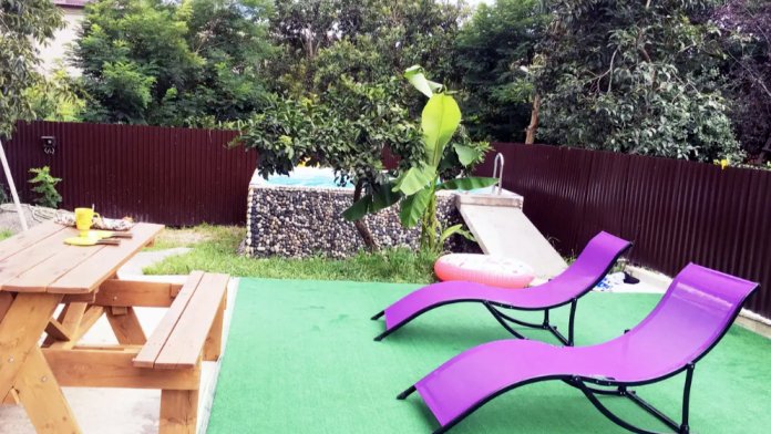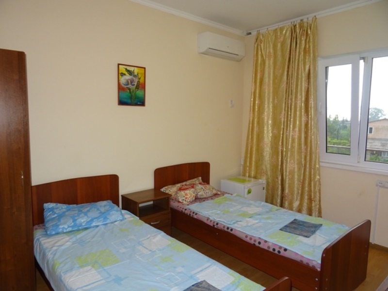 Приглашаем в гостевой дом «Солнечный» в солнечную Абхазию, в г. Сухум. Гостевой дом 2015 года постройки расположен в обжитом микрорайоне. Недалеко от гостевого дома расположен ж/д вокзал, обезьяний питомник и ботанический сад. До моря и галечного, городского пляжа можно дойти за 15-20 минут (в сезон до моря и обратно курсирует бесплатный трансфер). Или Вы можете сесть рядом с гостевым домом на троллейбус и через 15 минут окажитесь на единственном в Абхазии песчаном пляже. Относительная удаленность от моря полностью компенсируется почти деревенским пейзажем, вокруг зелень, сады, по утрам поют птицы и очень тихо (шума машин Вы не услышите). До центральной части города можно добраться пешком (15 минут) или транспортом (10 минут). Удобно и для тех, кто любит ночную жизнь курортов и для предпочитающих спокойный, семейный отдых.