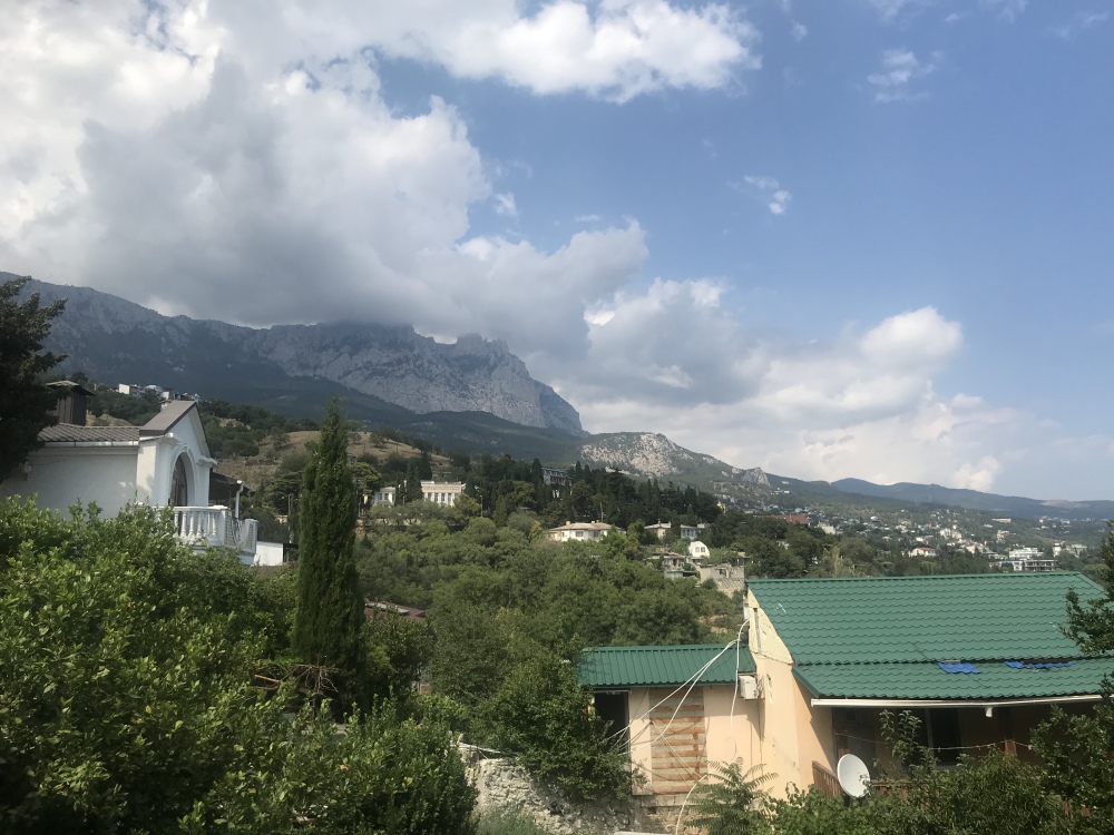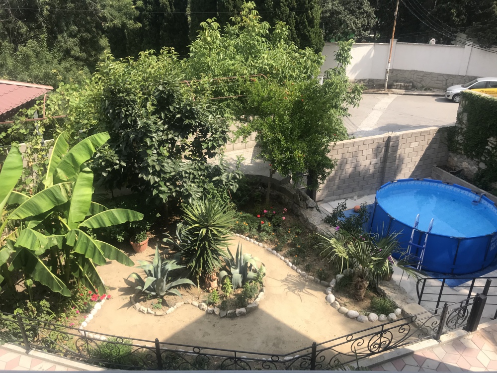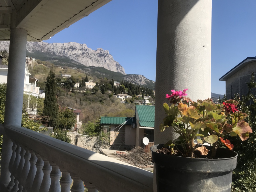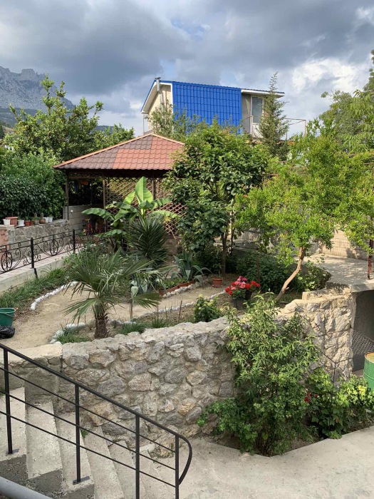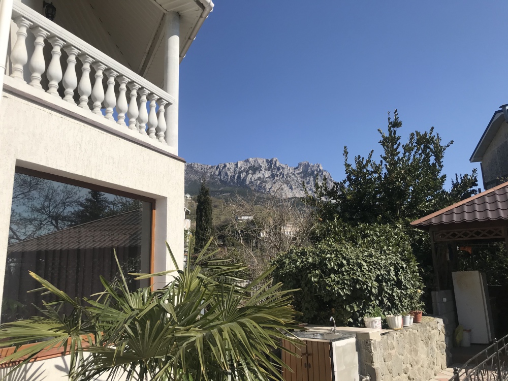 • Из окон на втором этаже открывается вид на гору Ай-Петри, а так же во двор дома, где растут экзотические пальмы и растения.