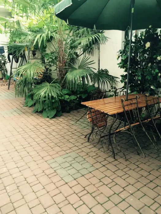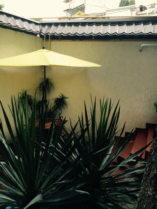 В доме есть 1 и 2-комнатные варианты размещения с кухнями, отдельными входами, своим закрытым зеленым двориком и зонами отдыха на свежем воздухе, зоной барбекю.