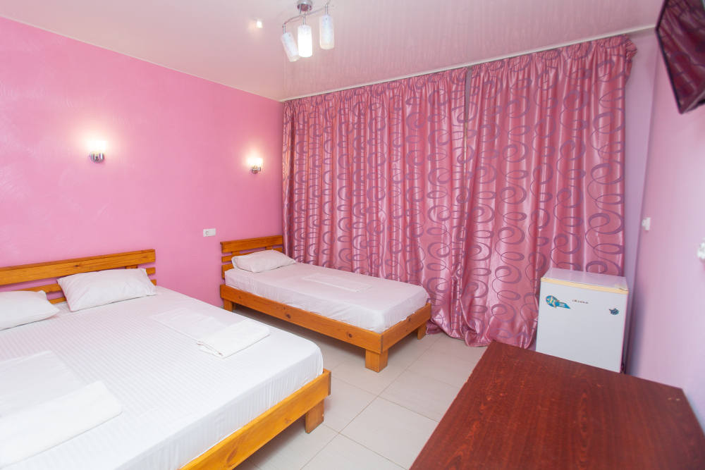 уютный трехместный номер со всеми удобствами. В номере находятся кровати с ортопедическим матрасами и качественным постельным бельем, телевизор, холодильник, кондиционер, чайник, фен. В душевой комнате находится новая сантехника и туалетные принадлежности. Бесплатный WI-Fi.