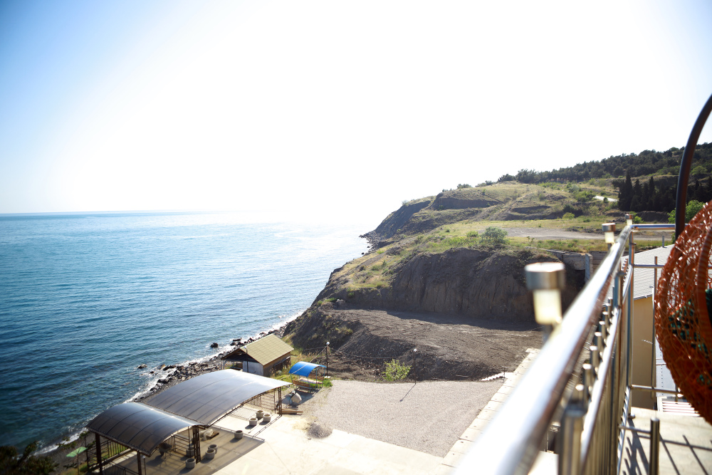 Гостевой дом расположен на самом берегу моря, до моря как рукой подать всего лишь 15 метров, пляж галечный.