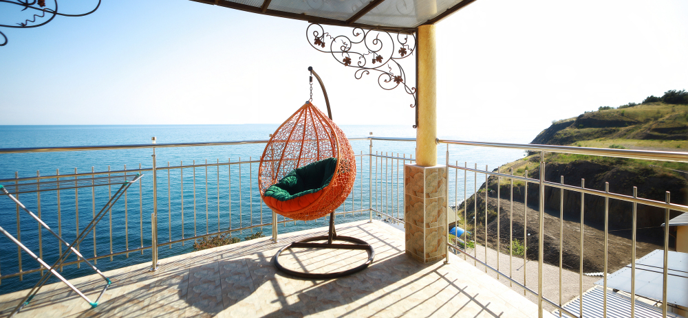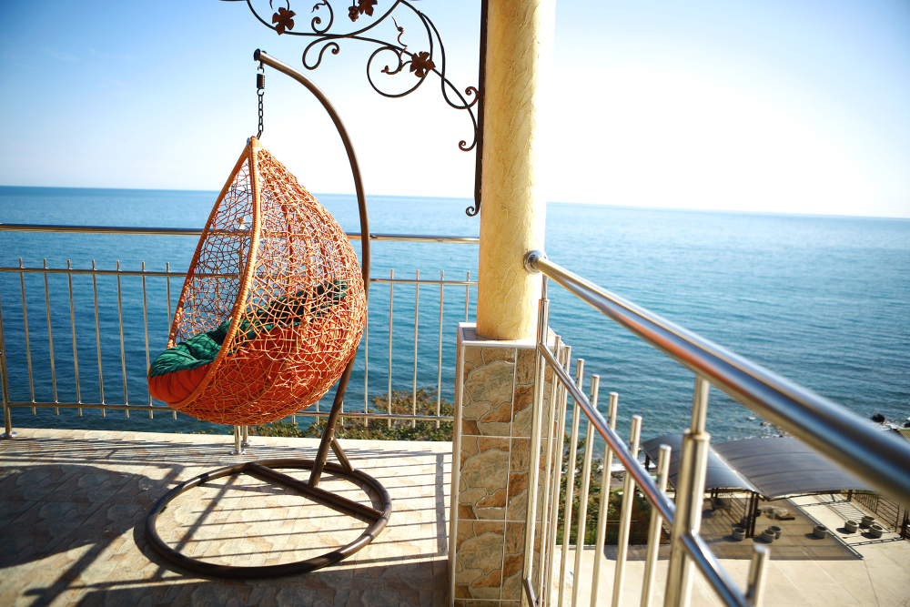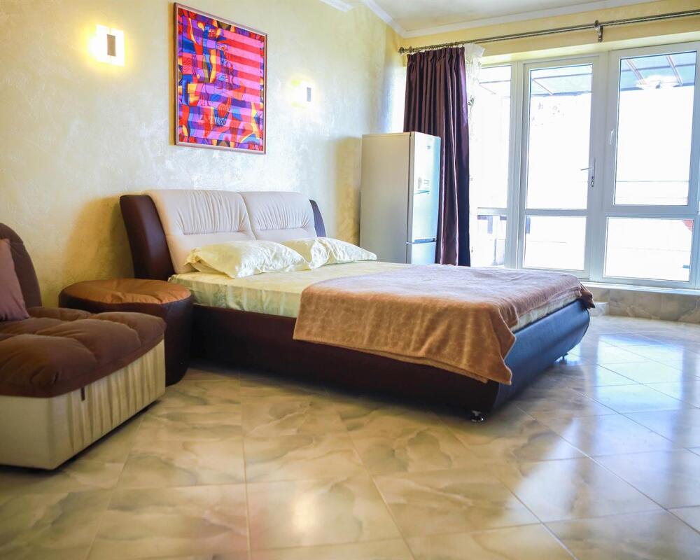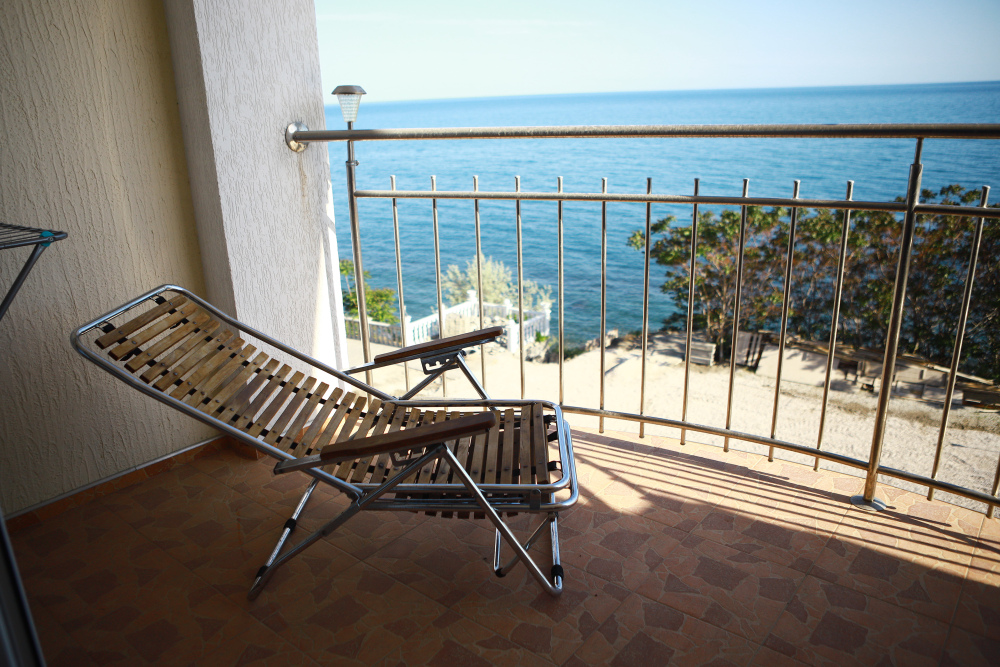 Великолепно оборудованные номер с большой террасой 10 кв.м. на 5 этаже с видом на море. В номере большая двуспальная кровать и одноместная кресло кровать, большой телевизор, чайник, шкаф для одежды, кондиционер, посуда, кресло качалка а также мебель из ротанга. Ванная комната с душем и круглосуточной горячей и холодной водой. Панорамный вид на море и местную природу.