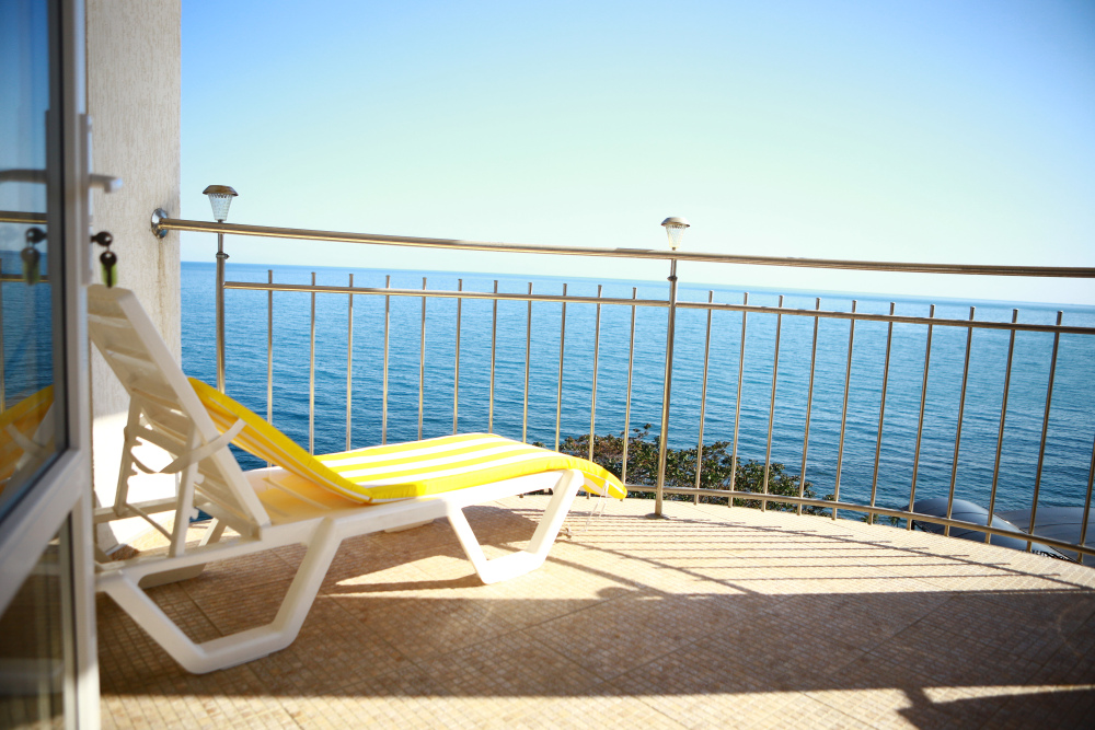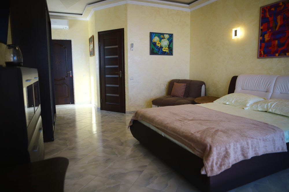 Комфортабельный, большой семейный номер 45 кв. м., с открытой террасой, с видом на море, оснащен всеми удобствами.