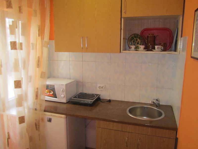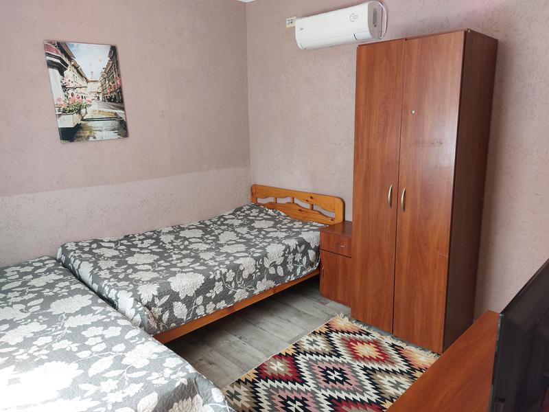 Наши комнаты - это скорее одно- и двух комнатные квартиры со всеми удобствами на земле в отдельном тенистом дворе. В каждой комнате - спальня с необходимой мебелью (в двойном - две), кухня-прихожая с необходимой посудой, санузел. К услугам гостей - постоянная горячая и холодная вода, кондиционер, холодильник, телевизор, сейф, Wi-Fi интернет. У каждой комнаты своя зона отдыха во дворе.