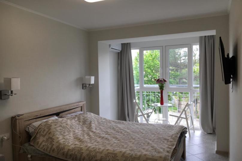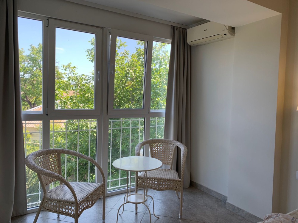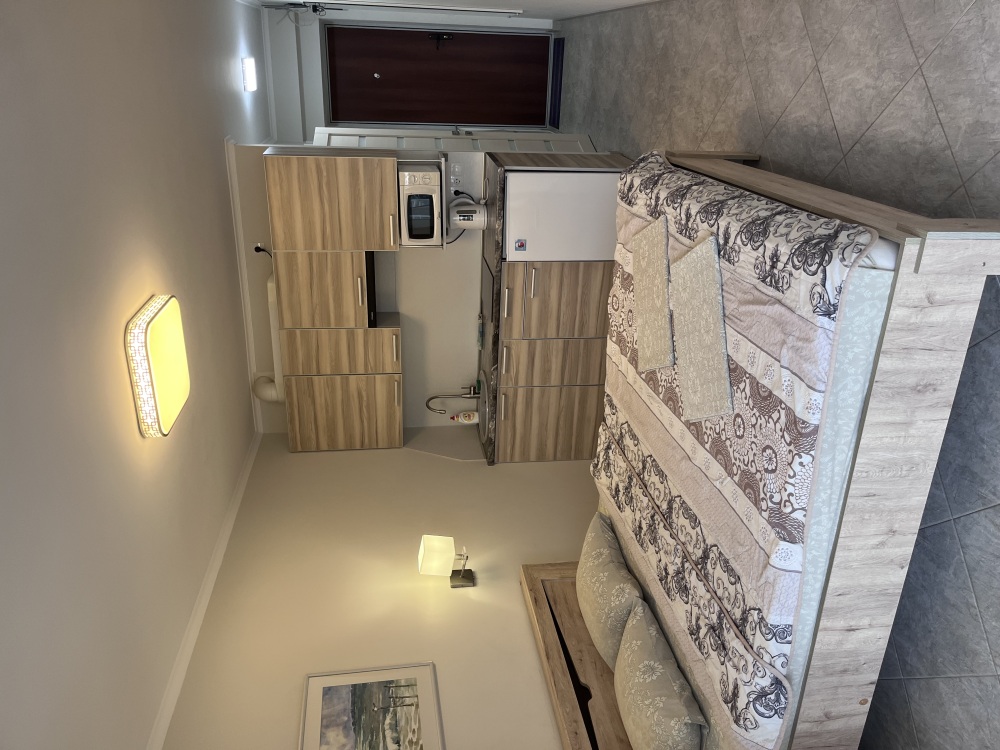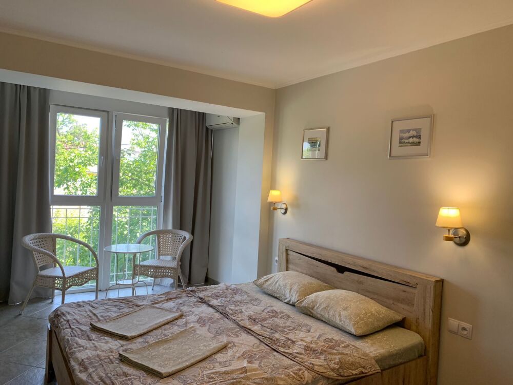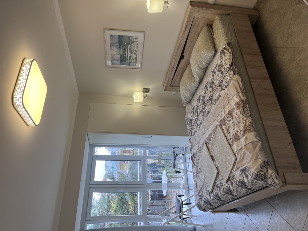 Сдаём новые студии в Феодосии, евроремонт. Двуспальная кровать (постельное белье, полотенца), кухня (холодильник, микроволновая печь, эл.плита, чайник, посуда), встроенный шкаф, утюг, гладильная доска, сушилка для белья, душевая кабина, стиральная машина, кондиционер, телевизор, wi-fi, сейф.