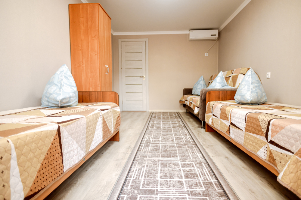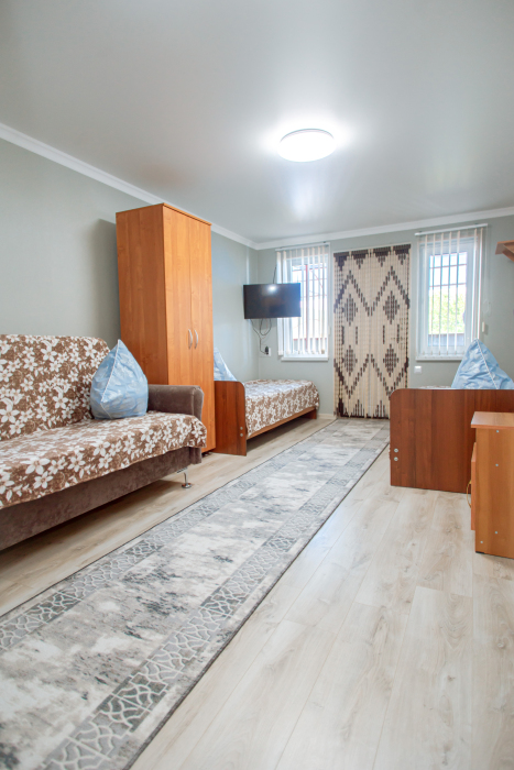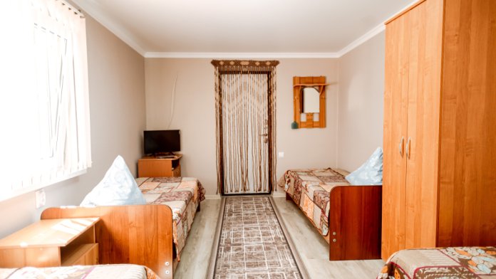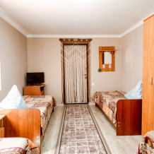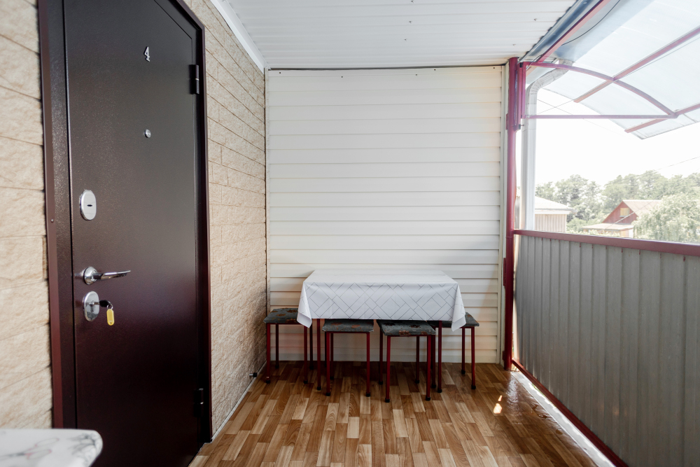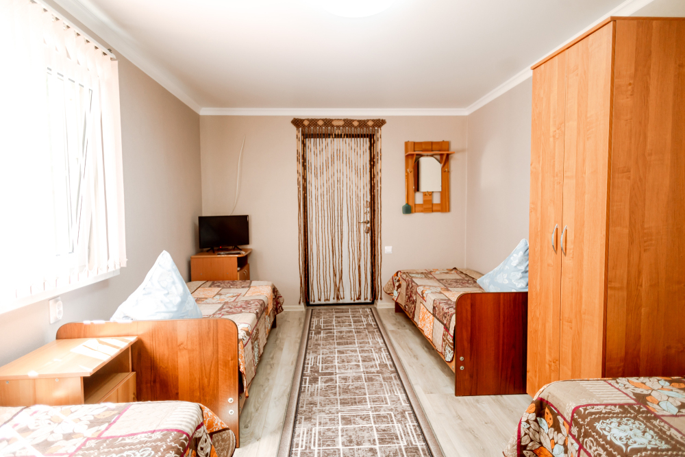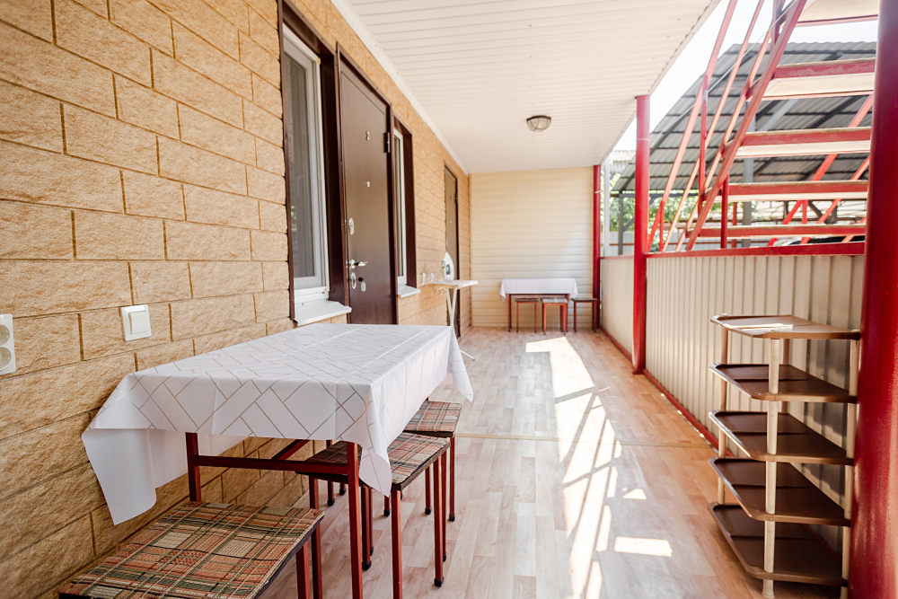 3-х местный номер со всеми удобствами, с доп. местом, рядом на террасе столик для приема пищи, кухня со всем необходимым оборудованием на этаже на три номера.