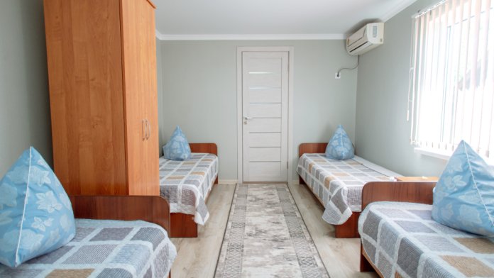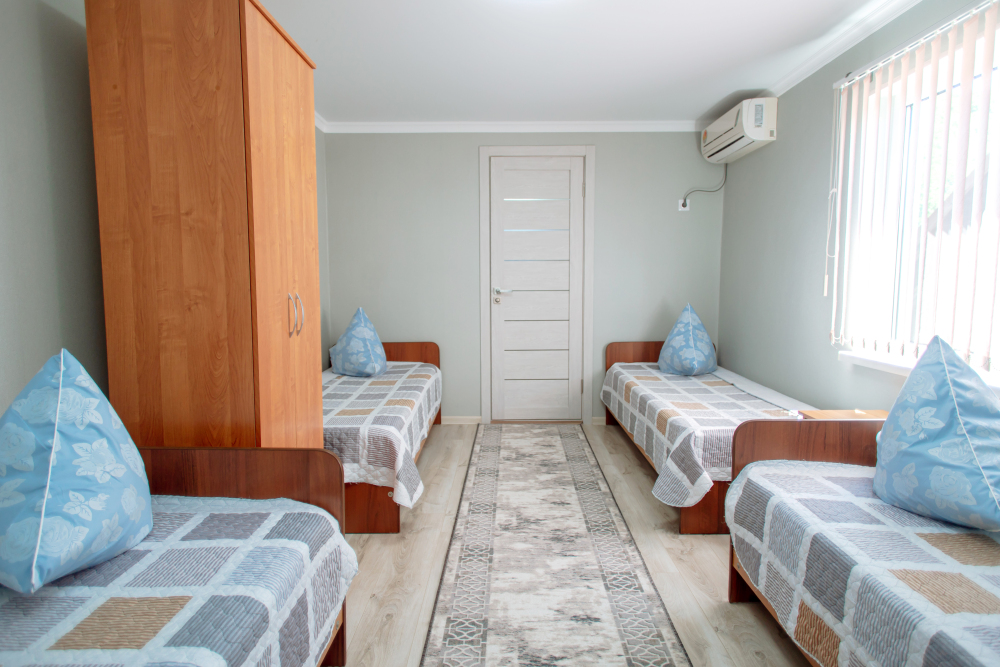4-х местный номер со всеми удобствами, рядом с номером на террасе столик для приема пищи, кухня со всем необходимым оборудованием на этаже на три номера.