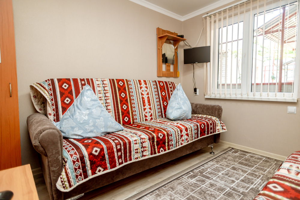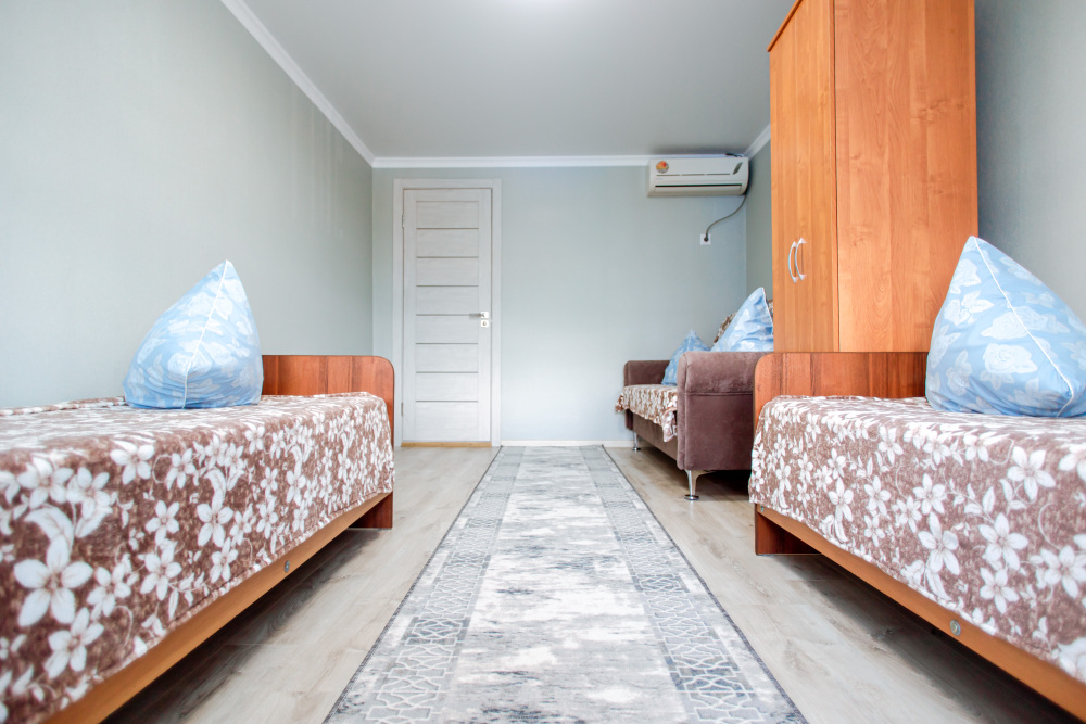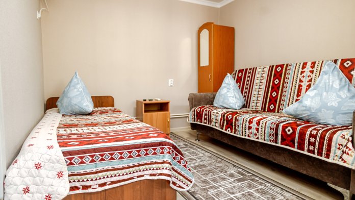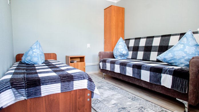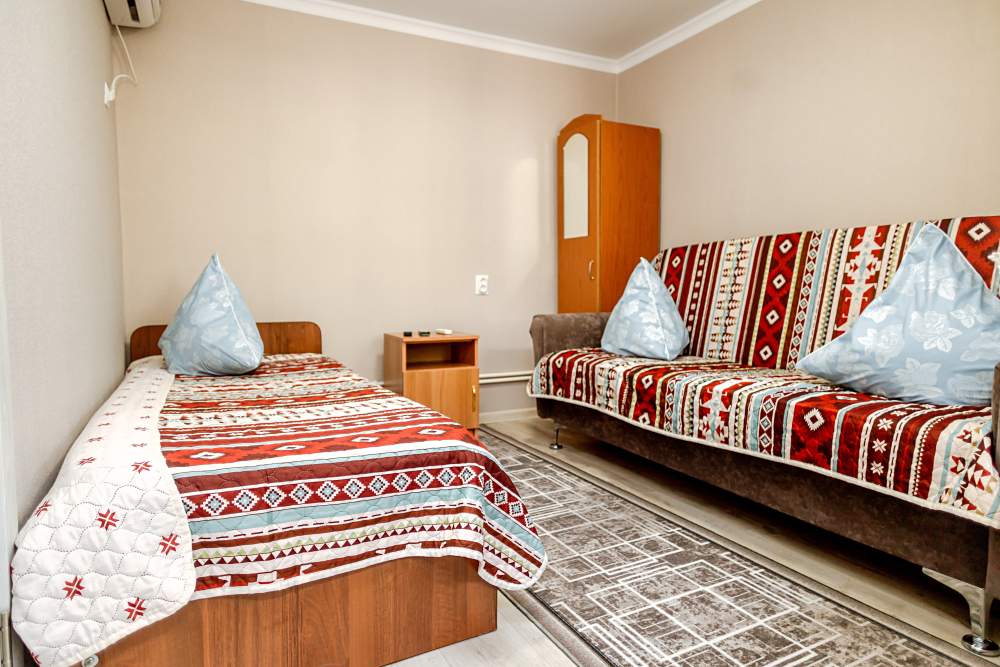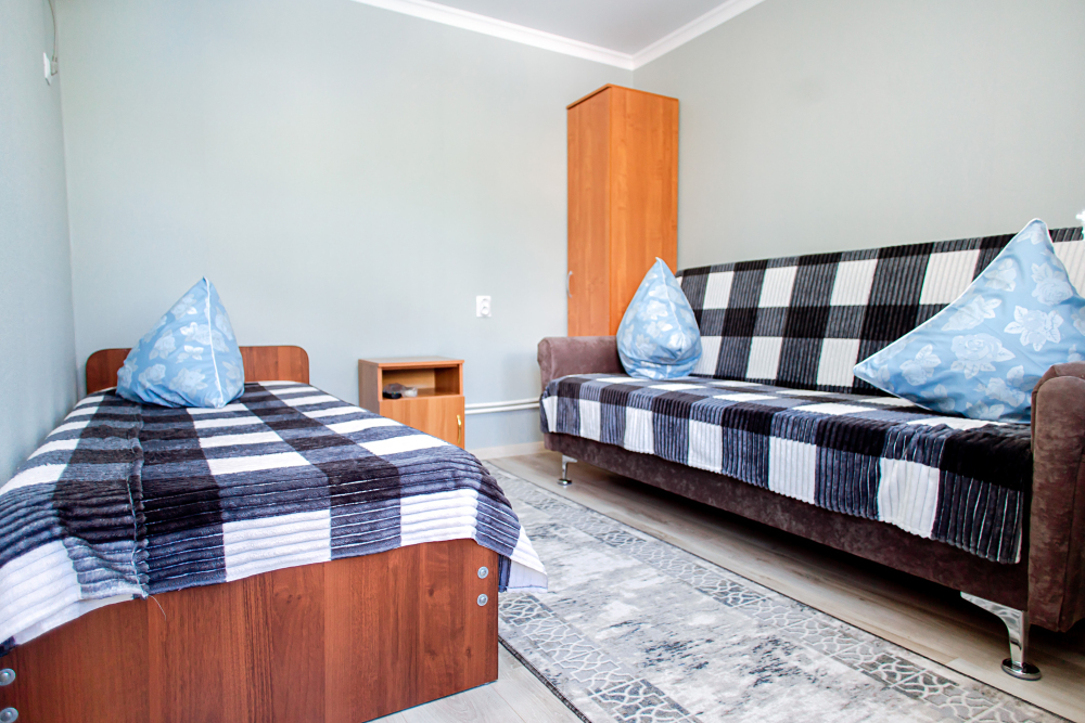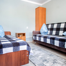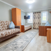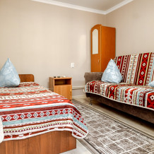 2-х местный номер со всеми удобствами с доп.местом, рядом с номером столик для приема пищи, отдельная мини кухня со всем необходимым оборудованием.