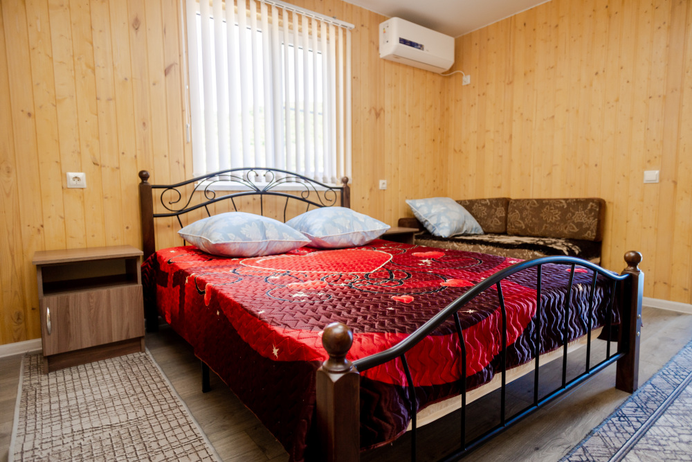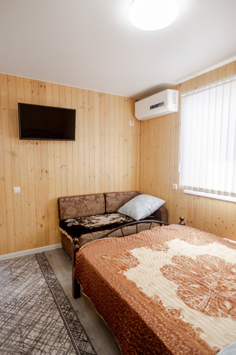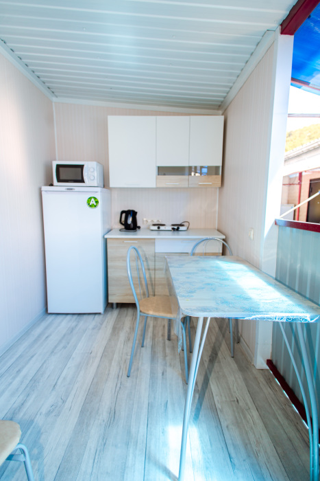 2-х местный номер со всеми удобствами с доп. местом, рядом с номером на террасе столик для приема пищи, кухня со всем необходимым оборудованием на три номера.