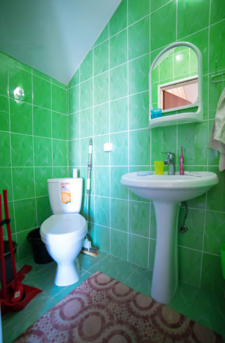 Номер с большим балконом . На первом этаже стиральная машина, кухня и беседка для отдыха. В номере вся необходимая мебель,в том числе : две односпальных кровати в одной комнате,а во второй два двухспальных раскладных дивана, кондиционер, водонагреватель, фен, телевизор, спутниковое, цифровое тв, интернет, санузел совмещенный.Холодная и горячая вода -круглосуточно.