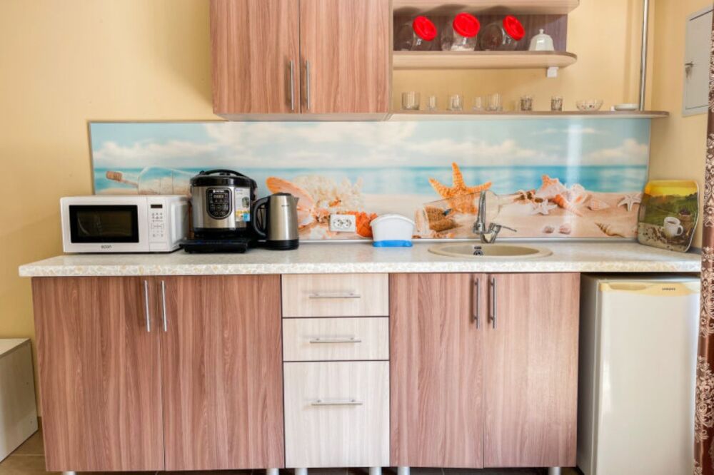 Имеется полностью оборудованная, благоустроенная кухня для самостоятельного приготовления пищи (холодильники, посуда, плита). В шаговой доступности от нас располагаются: центр села детской площадкой, , кафе, магазины. Во всех номерах независимо от категории есть телевизор, кровати, кондиционер, гардеробная, зеркало, стол, Wi – Fi. Говорить о преимуществах отдыха у нас можно долго, лучше приезжайте и наслаждайтесь отдыхом у моря!