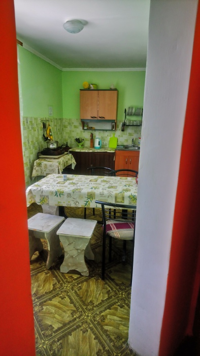 В каждом номере есть кухня, которая оборудована всем необходимым для самостоятельного приготовления: холодильник, микроволновка, кондиционер, телевизор, спутниковое ТВ. Есть беседка на свежем воздухе, мангал. Прекрасный вид на Генуэзскую крепость.