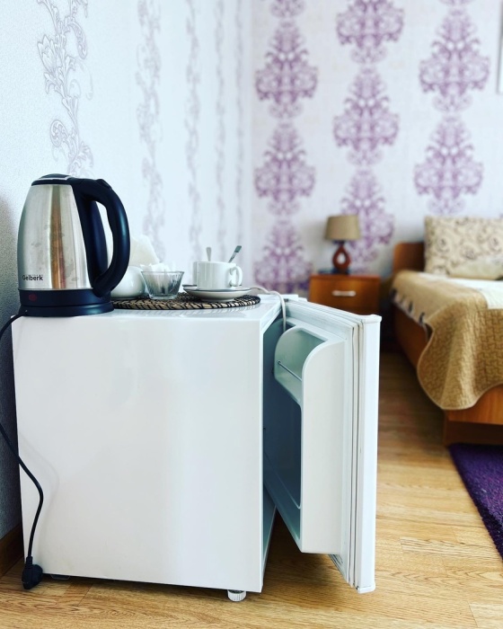 На этаже: Кулер, холодильник, гладильная доска, фен.