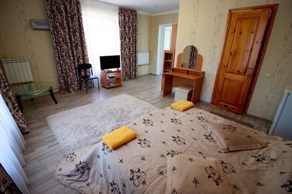 В гостинице могут одновременно расположиться до 84 проживающих. К их услугам двух-, трех-, четырехместные номера со всеми удобствами и номера люкс. Отдохнуть и провести время с друзьями и семьей наши гости могут во вместительном банкетном зале или уютном баре. Кроме того, наши клиенты могут посетить в любое время года сауну c бассейном, тренажерный и фитнес-зал. Для любителей и профессиональных спортсменов всегда открыты четыре футбольных поля с натуральным газоном. Особая гордость нашего комплекса – первое в Крыму тренировочное поле для гольфа. Наша гостиница в Крыму – это не просто место, где можно отдохнуть душой и телом, а также и незабываемые впечатления, которые будут согревать Вас воспоминаниями круглый год!