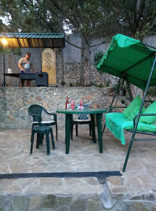 Во дворе расположен еще один домик, для пары.Общий только вход на участок.Домики расположены отдельно друг от друга.Это не гостевой дом,где коридорная система,где на каждом этаже по 2-5 номеров и более,где одна кухня на этаже для всех.В домике Прованс у отдыхающих индивидуальные условия: личная кухня,туалет,стол и кресла для отдыха во дворе.Участок не перегружен отдыхающими, не многолюдно,организован так,чтобы у каждого домика был отдельный участок для отдыха на свежем воздухе в тени можжевеловых деревьев.