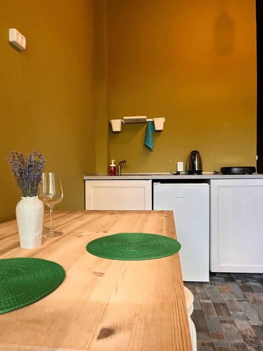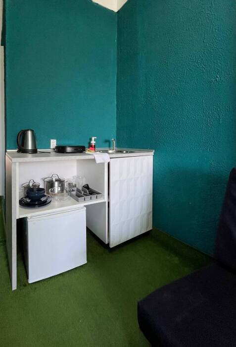 Номер с выходом на собственный балкон, откуда Вы сможете насладиться видом на море и горы. На балконе удобные пуфики, а покрытие имитирует мягкую траву, что позволяет расслабиться еще больше. В апартаментах двуспальная кровать с белоснежным бельем, на кухне посуда, необходимая для приготовления, а индукционная плита позволит ускорить процесс. В санузле постоянный доступ к горячей воде, полотенца и фен. Охладиться после жаркого солнца поможет кондиционер, а ночью Вы сможете открыть балкон, наслаждаясь свежим воздухом, так как на балконной двери есть дверь-сетка.