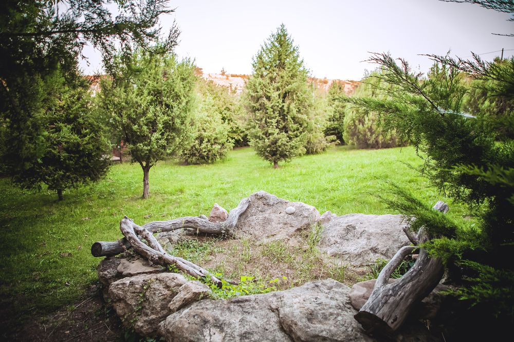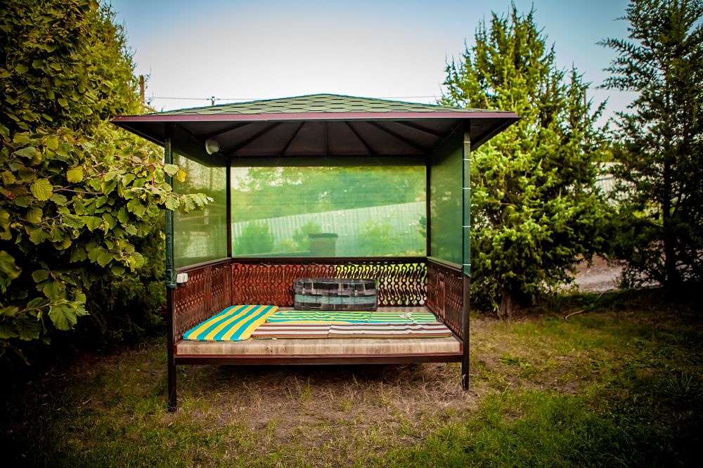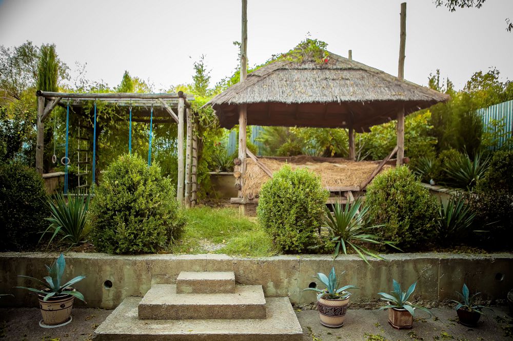 Большая зеленая территория, зоны для отдыха на свежем воздухе, мангал, беседка, качели.