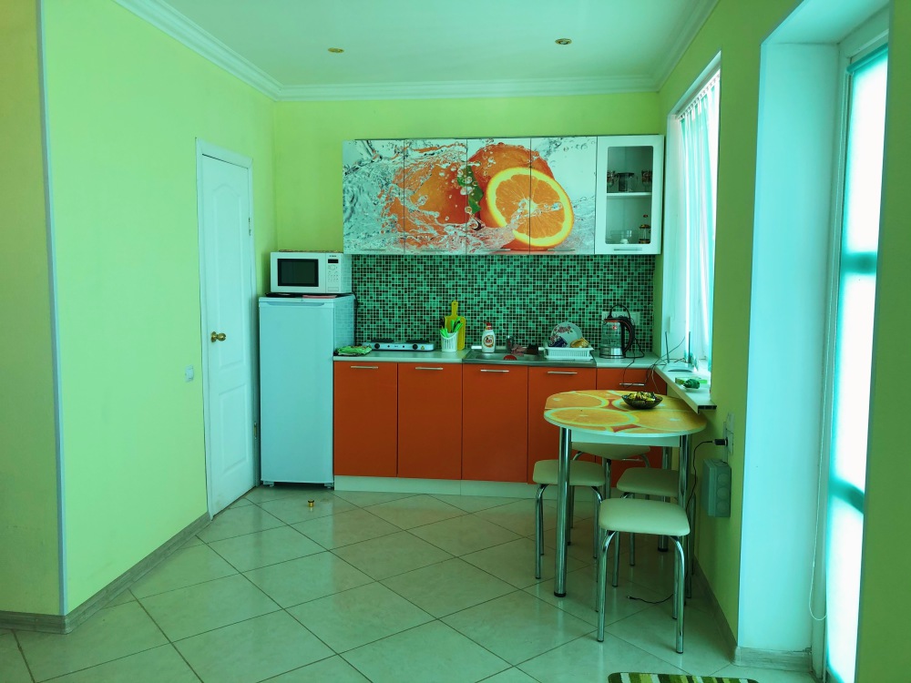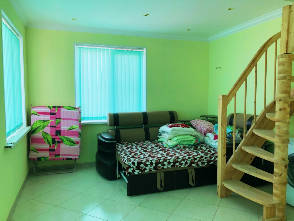 Были с внуками. Все понравилось. Искали именно такой вариант, чтобы было минимум соседей. Все чистенько. До моря 5 минут медленным шагом. Внучка 2-х лет ходила сама. Море было чистое, теплое. Пляж-песочек. Заход плавный с перекатами, для детей самое то. Пару дней было ветренно и пасмурно, на море был небольшой накат, но купались. Внукам понравились волны. На пляже людей мало, что для нас было немаловажно. Из минусов для меня-это крутая лестница на второй этаж, мне (мой рост 178) было не очень удобно. Пожелание хозяевам-задуматься о замене матраца на кровати 2-го этажа, а так же подумать о переносе холодильника в другое место-он не дает полностью открывать дверь в туалет. Рядом в ст.Ветеран есть магазин, но я ездил в Штормовое, там выбор побольше. Дороги-грунтовка и асфальт не первой свежести. Общее впечатление-отлично. Приветливые и ненавязчивые хозяева. Спасибо им за отдых.