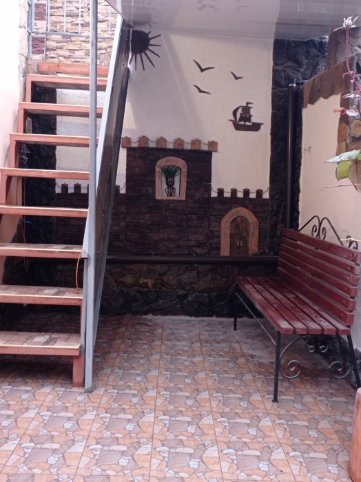 В каждом большом номере в наличии уютная мебель, телевизор, WI-FI, кондиционер, кухня( оборудована всем необходимым для приготовления пищи), санузел с душевой кабинкой, вода горячая и холодная постоянно.