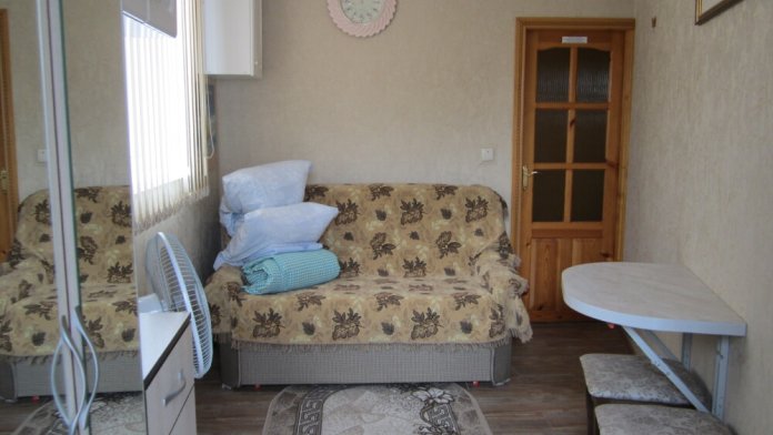 Стандартный номер, 1-комнатный, для 1- 2 человек. В номере есть: платяной шкаф, раскладной диван, стол, полки для вещей, ЖК-телевизор-каналы Т-2(цифровое), постельное белье, утюг, кондиционер. В ванной комнате : раковина для умывания, унитаз, душевая. Вода горячая и холодная постоянно. Комната для приготовления пищи( именно к этому номеру) расположена напротив. В которой есть все необходимое - холодильник, микроволновая печь, посуда, электроплита, электрочайник, комфортная кухонная мебель.