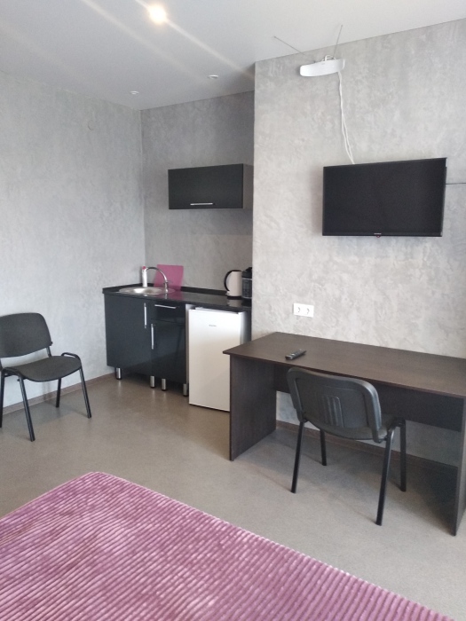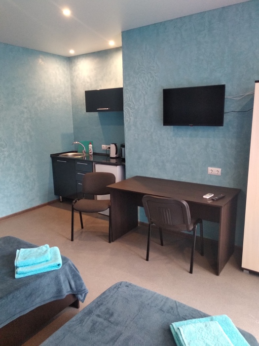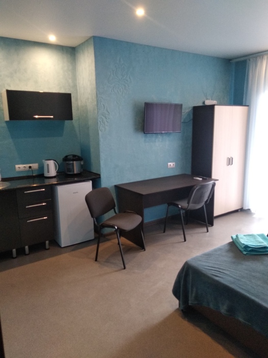 Апартаменты полностью меблированы, оборудованы мини-кухней, санузлом с просторной душевой кабиной, кондиционером, телевизором, wi-fi. В некоторых апартаментах имеется возможность установки дополнительного спального места.