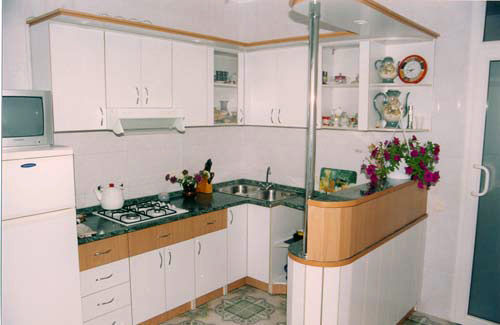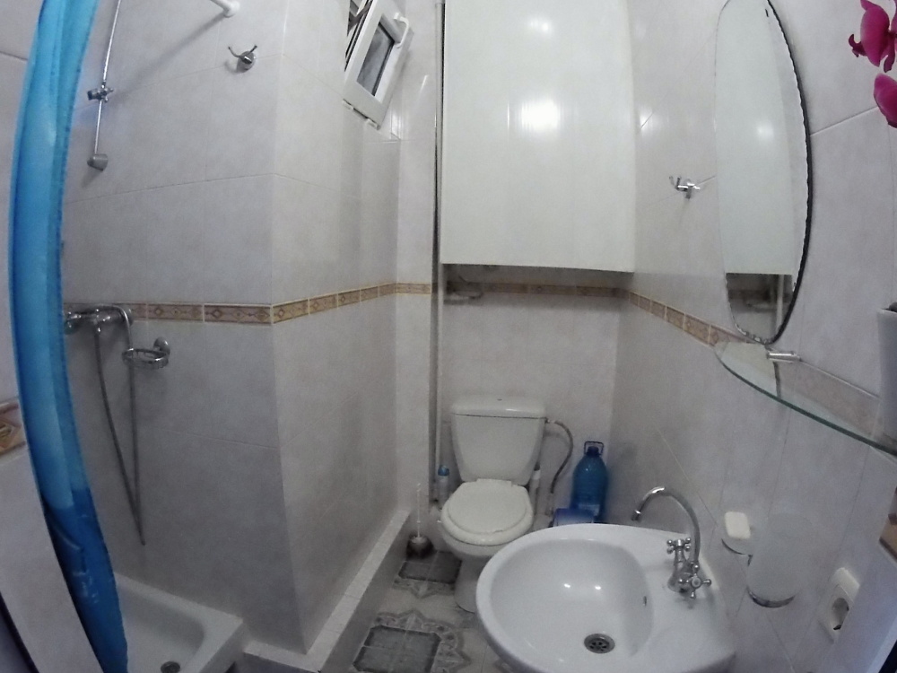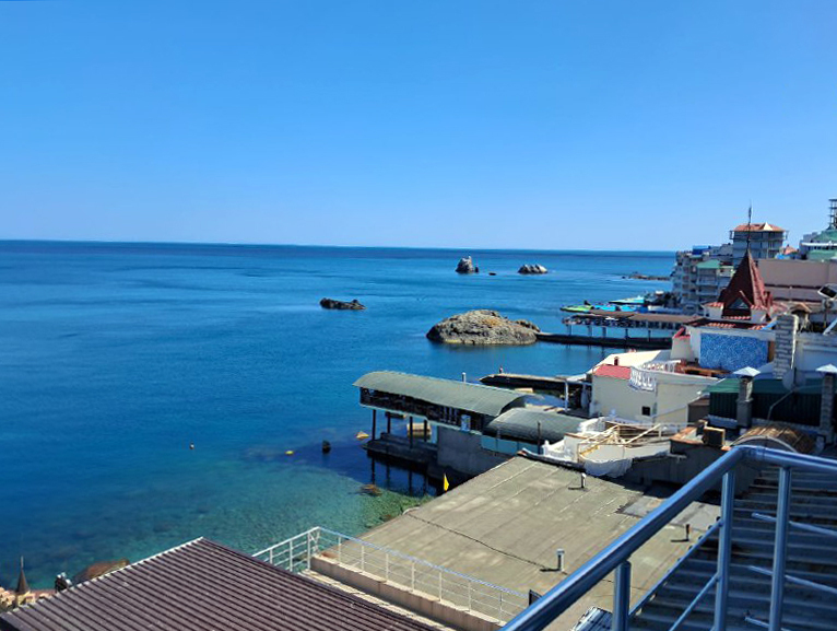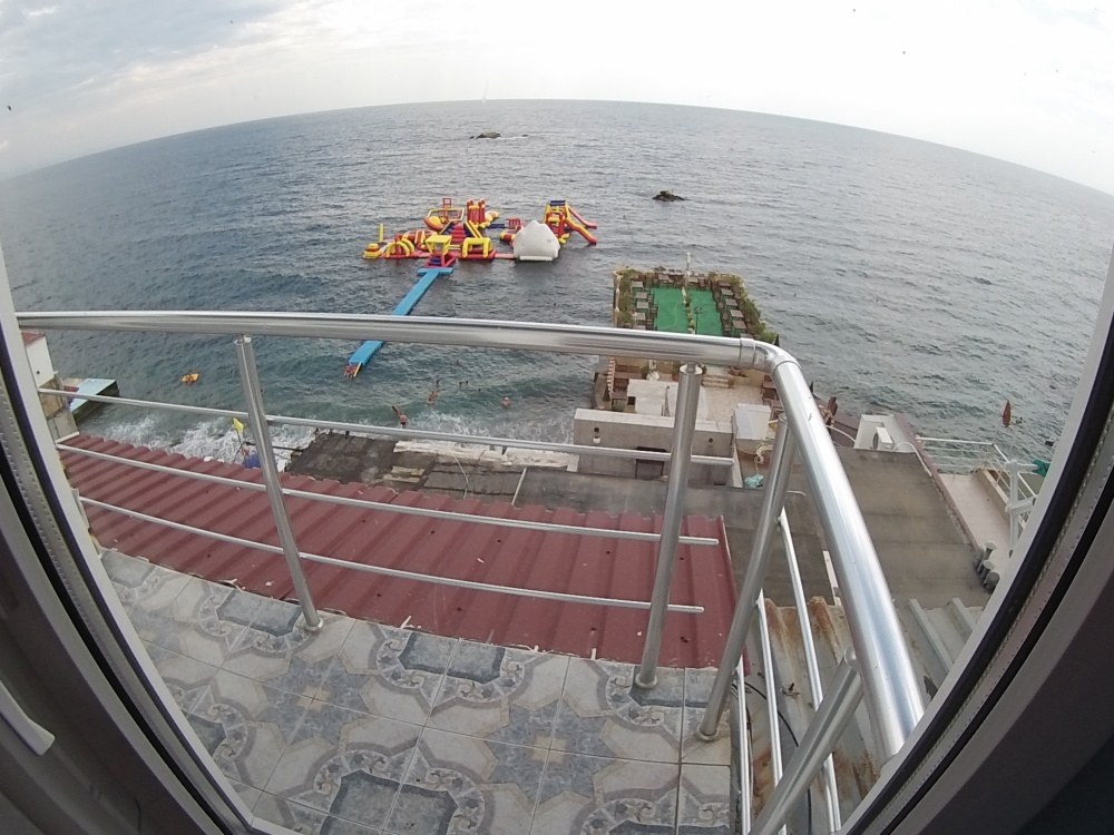 Общая кухня оборудована всем необходимым для современного гостя (есть вся кухонно-бытовая утварь и техника, кроме посудомоечной машины). К кухне относится свой, вмещающий до 10-11 человек, балкон (с видом на море).