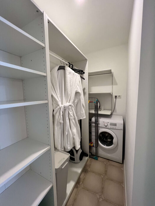Просторный апартамент с изолированной спальней, кухней, гостиной и террасой. Дизайн выполнен в современном стиле. А на террасе можно отдыхать, загорать, собираться всей семьей за столом.