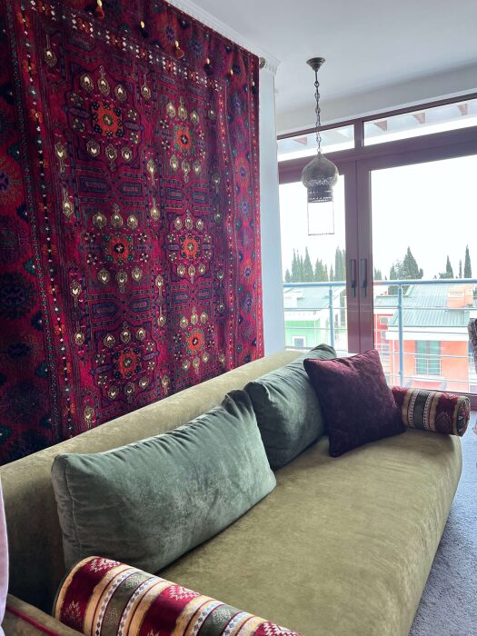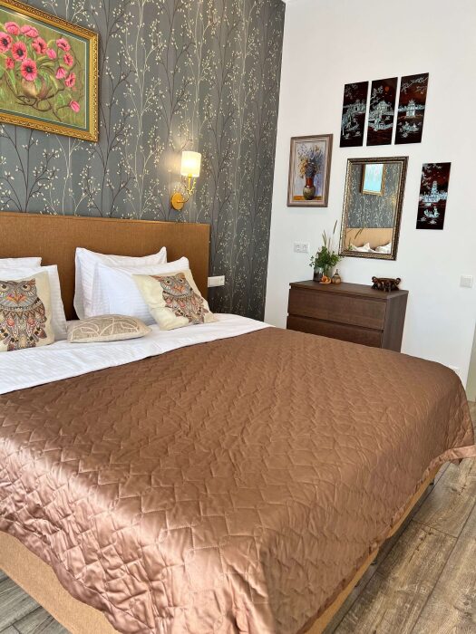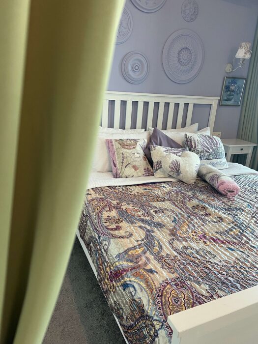 Цветочный и нежный. Расслабит своей обстановкой не хуже спа. Ласково украсит будни красивыми оттенками текстиля и волшебным видом за окном.