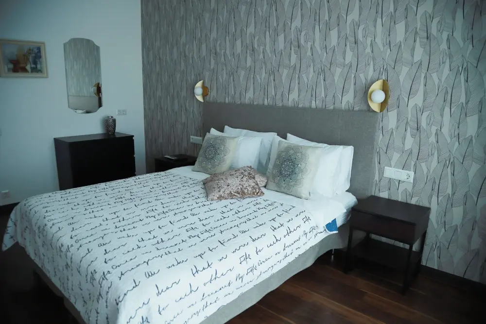 Стильный, будто с обложки глянца. На предпоследнем этаже жилого комплекса, а значит с одним из самых завораживающих видов, который открывается перед вами не вставая с кровати.