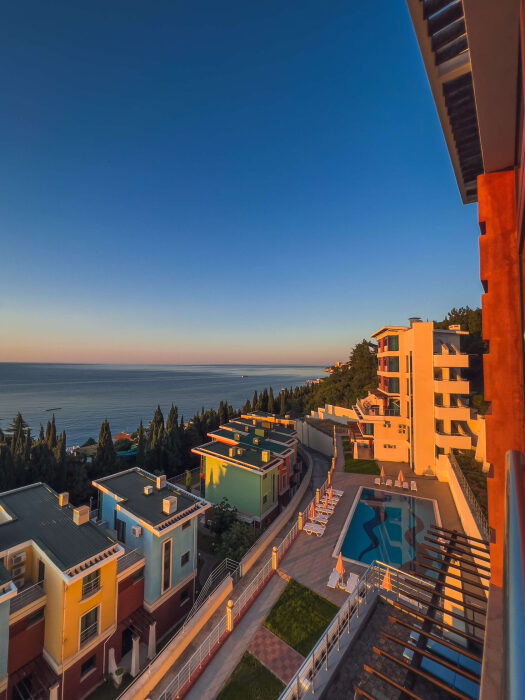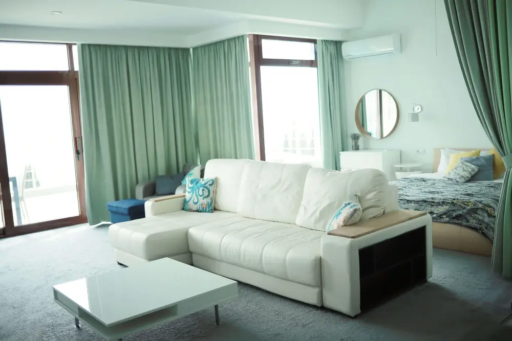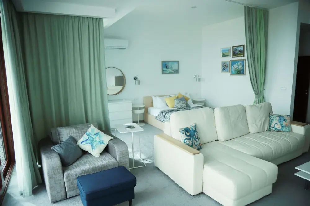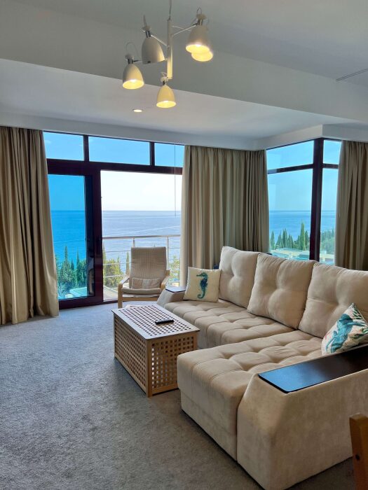 Все апартаменты с потрясающим видом на море и панорамными окнами.