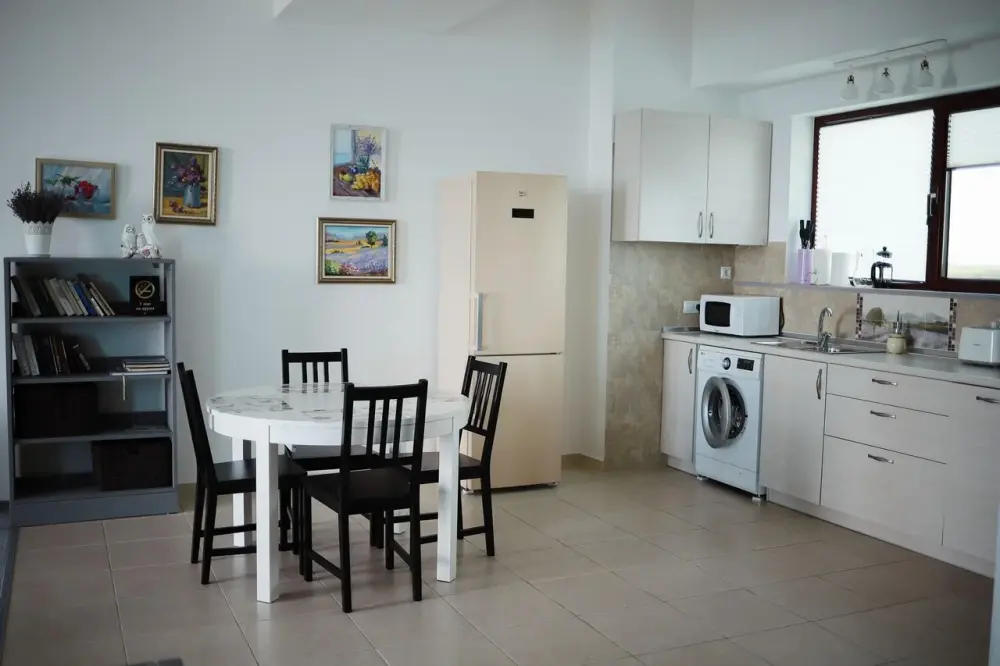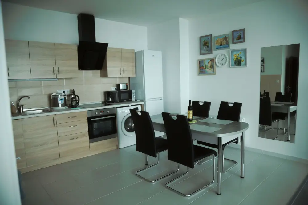 Из окон апартаментов открывается прекрасный вид на море. Утром можно наслаждаться великолепными восходами солнца, а вечером фантастическими закатами. На территории апартаментов открытый сезонный бассейн с подогреваемой водой. Все апартаменты в идеально чистом состоянии с соблюдением всех стандартов гигиены и безопасности, в том числе для самых маленьких гостей.