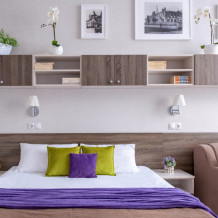В 50 метрах от дома находится продуктовый магазин. У апартаментов очень удачное местоположение. Они находятся в 3 минутах ходьбы от главного питьевого бювета санатория «Галерея Минеральных источников», который является самым большим питьевым бюветом в нашем городе. В нем собраны все виды минеральной воды: Ессентуки № 4, 17, 20, 2 Новая, 1 Буровая. Парк санатория занимает площадь 22 Га и во многом напоминает ботанический сад, в нем произрастает более 200 видов лечебных и декоративных растений, деревьев и кустарников. Сад имеет прекрасный ландшафтный дизайн с многочисленными фонтанами, беседками и скульптурами. Напротив апартаментов парк Победы. В парке сделаны красивые прогулочные дорожки, установлены новые лавочки, высажены цветы, кустарники и деревья. Тут можно гулять, играть с детками, заниматься спортом, для чего на выбор три спортивные площадки для разных возрастов детей и взрослых. В 10 метрах от дома остановочный комплекс, с которого можно легко и быстро (5 минут) добраться до ж/д вокзала, до центра города и главного Курортного парка города (10-15 минут).