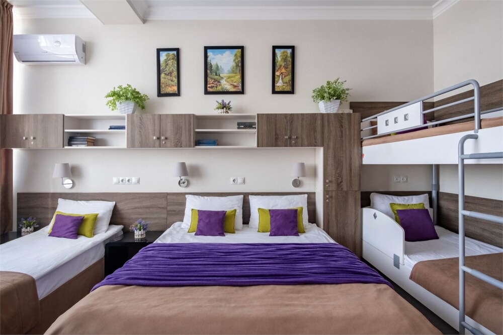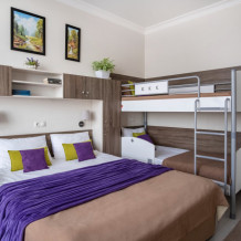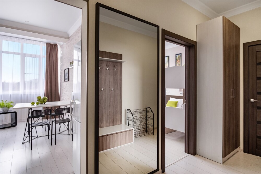 В 50 метрах от дома находится продуктовый магазин. У апартаментов очень удачное местоположение. Они находятся в 3 минутах ходьбы от главного питьевого бювета санатория «Галерея Минеральных источников», который является самым большим питьевым бюветом в нашем городе. В нем собраны все виды минеральной воды: Ессентуки № 4, 17, 20, 2 Новая, 1 Буровая. Парк санатория занимает площадь 22 Га и во многом напоминает ботанический сад, в нем произрастает более 200 видов лечебных и декоративных растений, деревьев и кустарников. Сад имеет прекрасный ландшафтный дизайн с многочисленными фонтанами, беседками и скульптурами. Напротив апартаментов парк Победы. В парке сделаны красивые прогулочные дорожки, установлены новые лавочки, высажены цветы, кустарники и деревья. Тут можно гулять, играть с детками, заниматься спортом, для чего на выбор три спортивные площадки для разных возрастов детей и взрослых. В 10 метрах от дома остановочный комплекс, с которого можно легко и быстро (5 минут) добраться до ж/д вокзала, до центра города и главного Курортного парка города (10-15 минут).