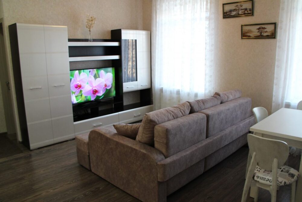 1-комнатная квартира с прекрасным дизайнерским ремонтом. 3 минут ходьбы до центра и 5 мин. до ж/д вокзала. Рядом парковая зона, музей, больница.
