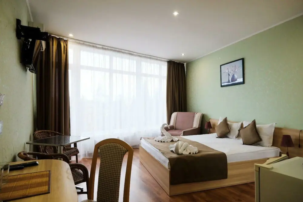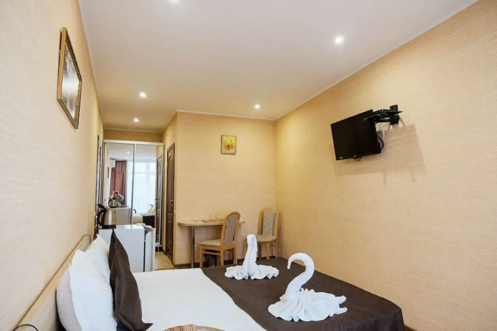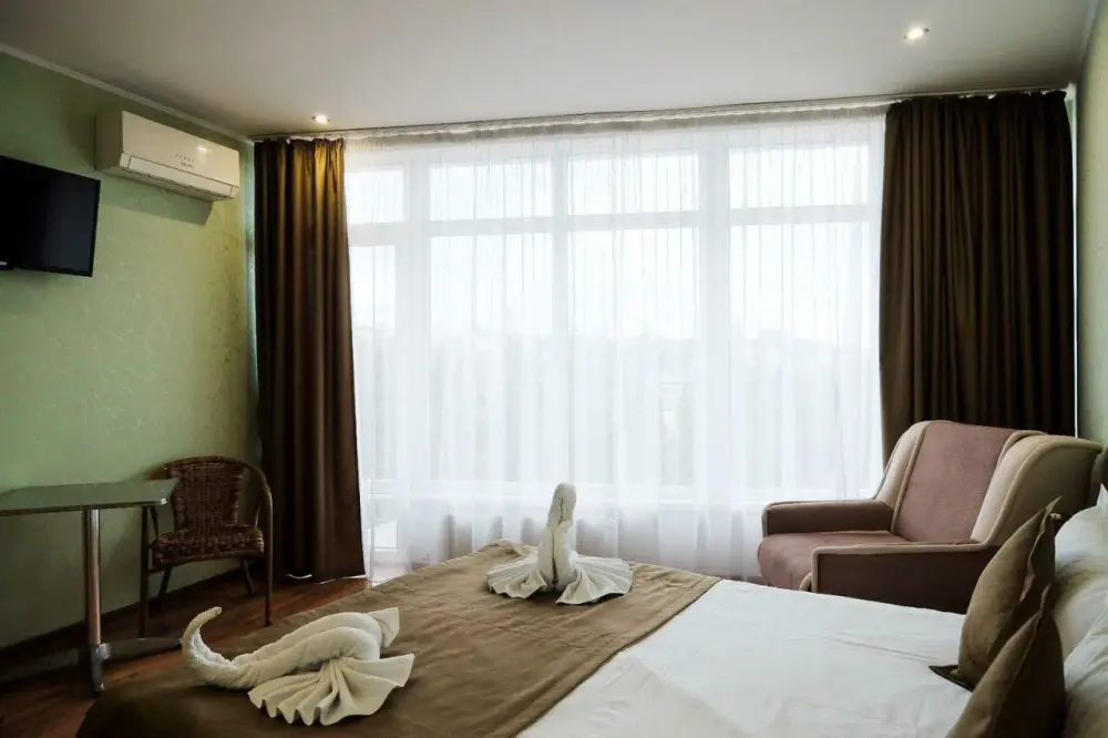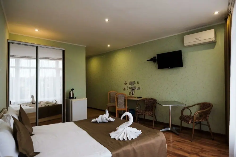 Уютные и комфортные номера с прекрасным индивидуальным дизайном, санузлы с душами, фены, кондиционеры, плазма TV со спутниковым ТВ, отоплением.