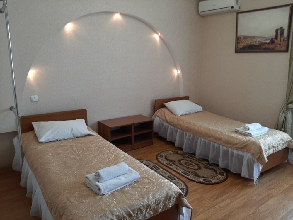 В номере: двухспальная кровать, письменный стол, кондиционер, телевизор, спутниковое ТВ, телефон, мини-холодильник, электрочайник, фен, сан узел, душевая кабинка, зона WI-FI.