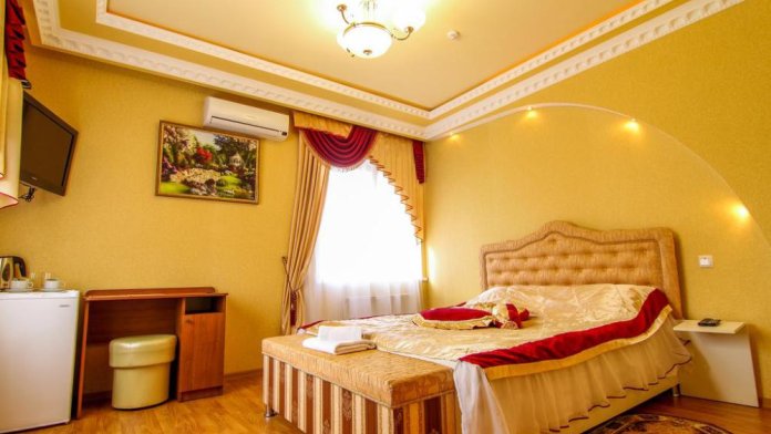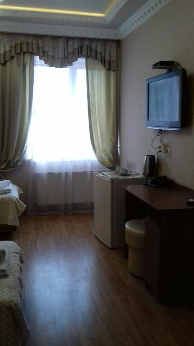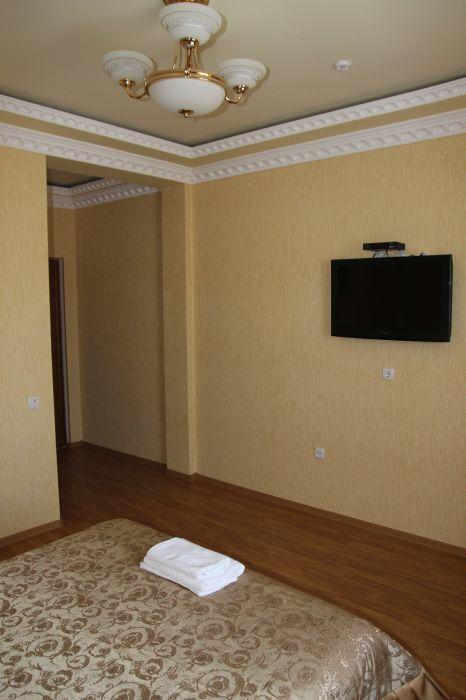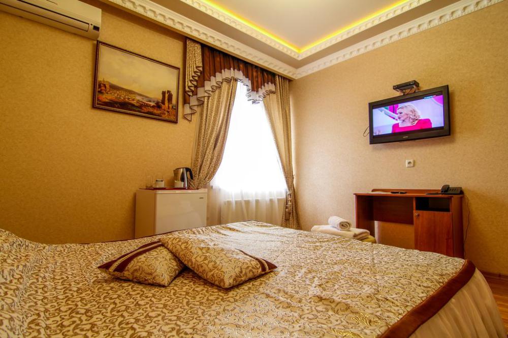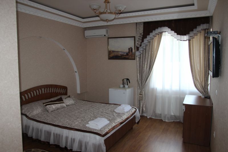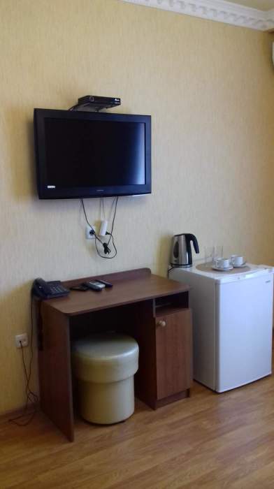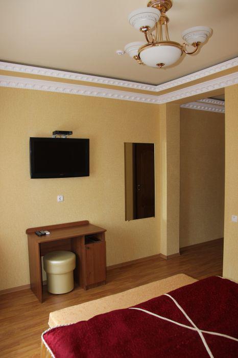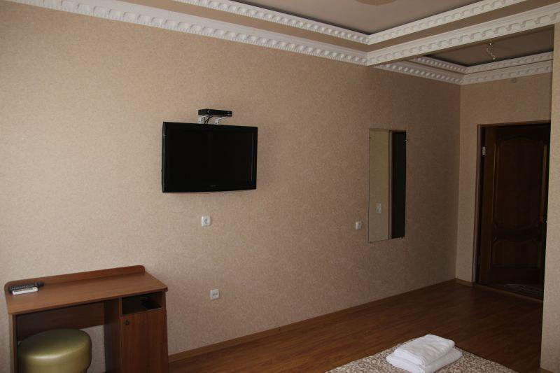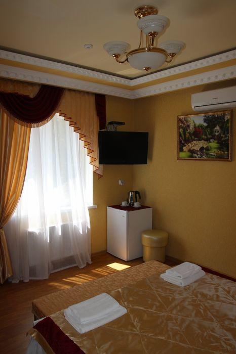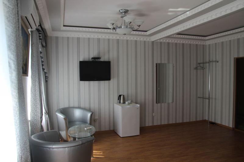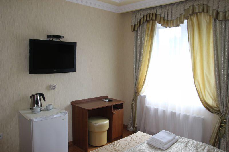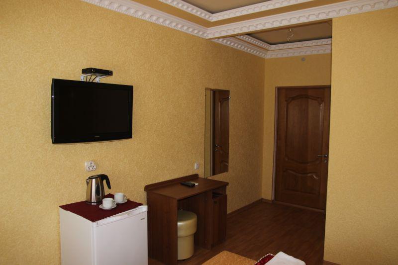 В номере: двухспальная кровать, журнальный столик с двумя креслами, кондиционер, телевизор, спутниковое ТВ, телефон, мини-холодильник, электрочайник, фен, сан узел, душевая кабинка, зона WI-FI.