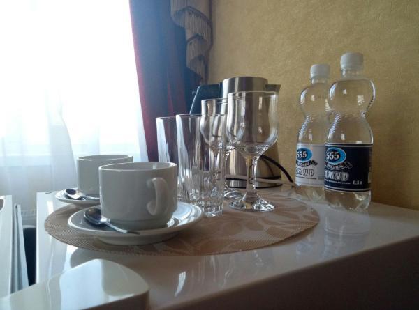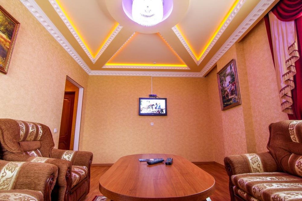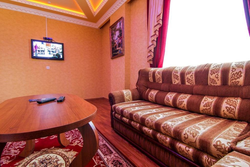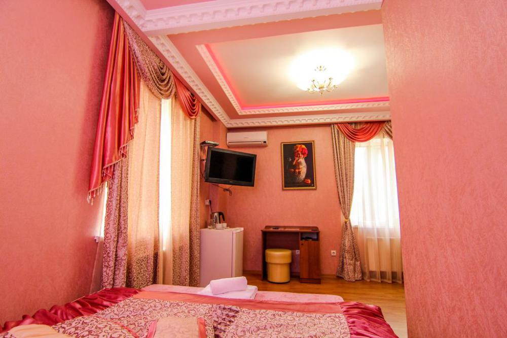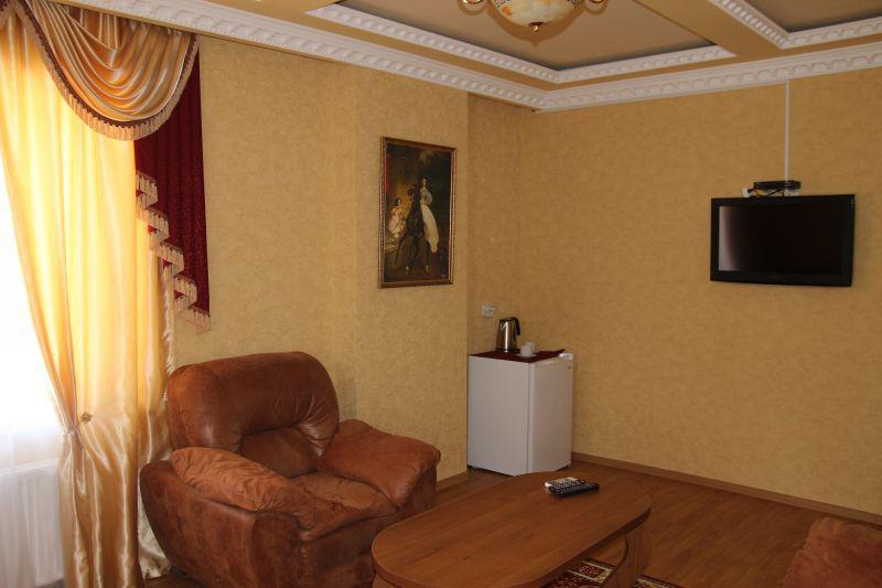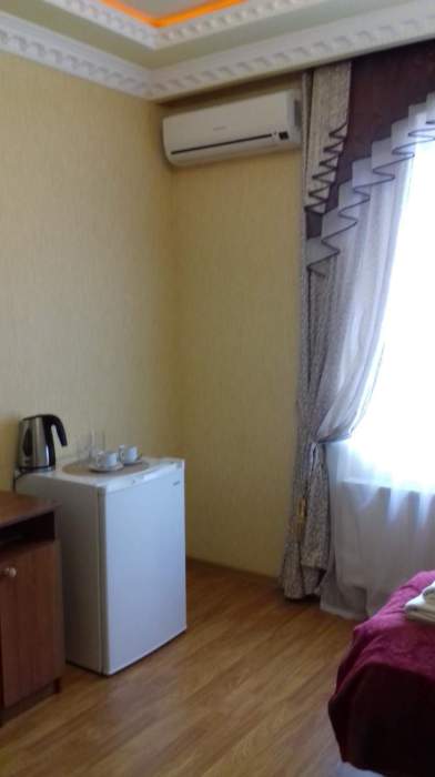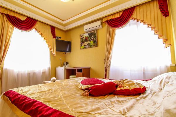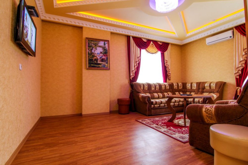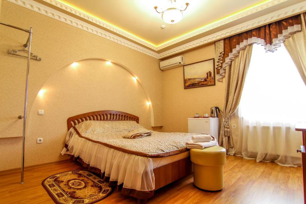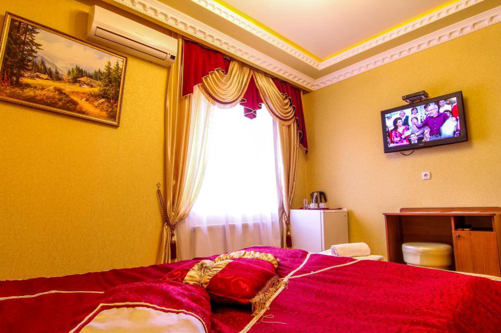 В номере: двухспальная кровать, журнальный столик с двумя креслами, кондиционер, телевизор, спутниковое ТВ, телефон, мини-холодильник, электрочайник, фен, сан узел, душевая кабинка, зона WI-FI.