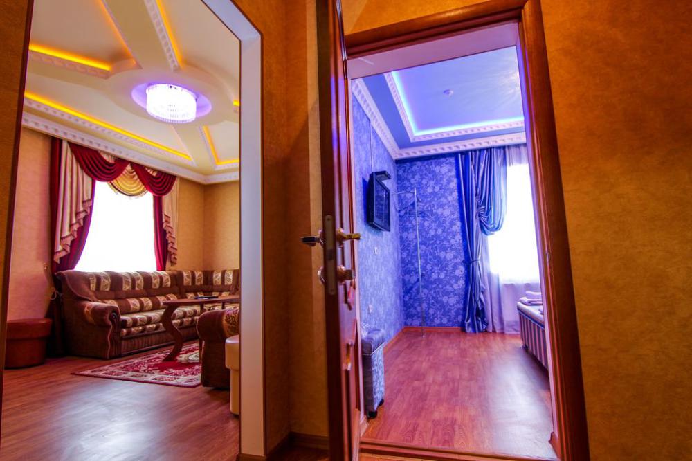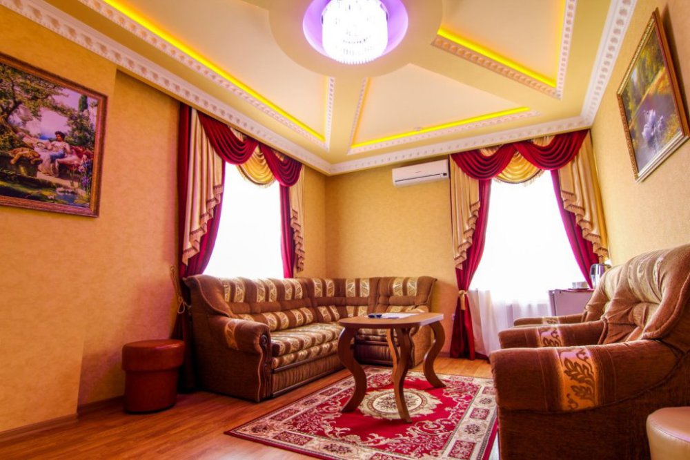 Номер «Люкс» - просторный двухкомнатный номер, выполнен в приятных пастельных тонах.