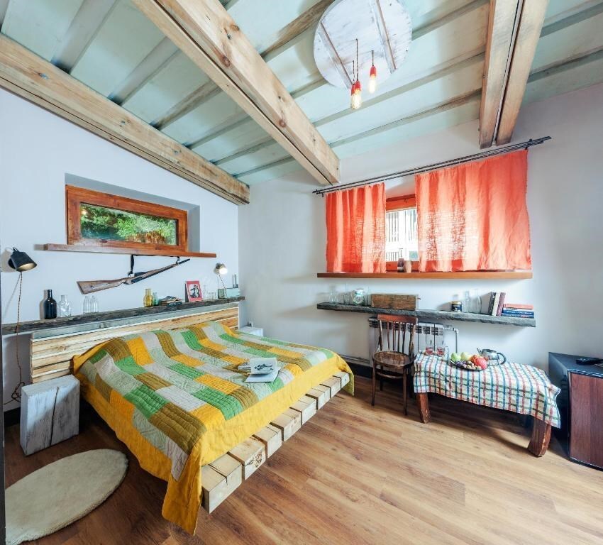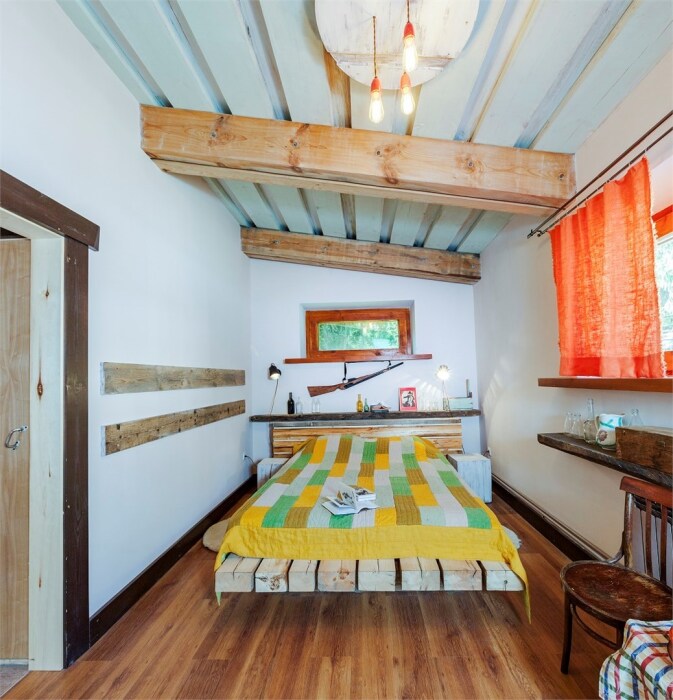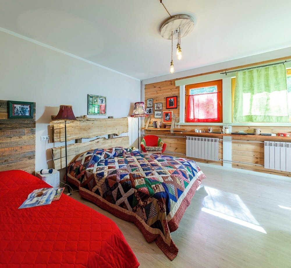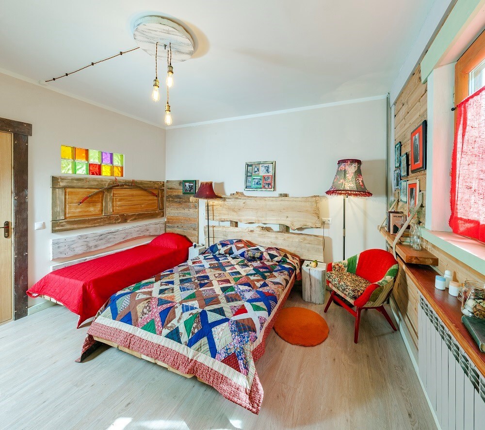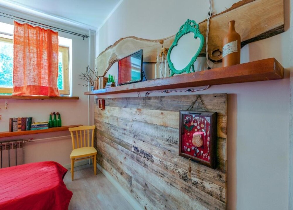 Однокомнатный комфортный номер с одной двуспальной и одной односпальной кроватью в даче-отеле в стиле 30-х гг «Гранж Авангард». В номере - две тумбочки, два стула, стол, холодильник, телевизор, электрочайник, фен. Ванная комната с душем и туалетом.