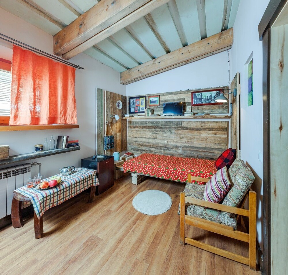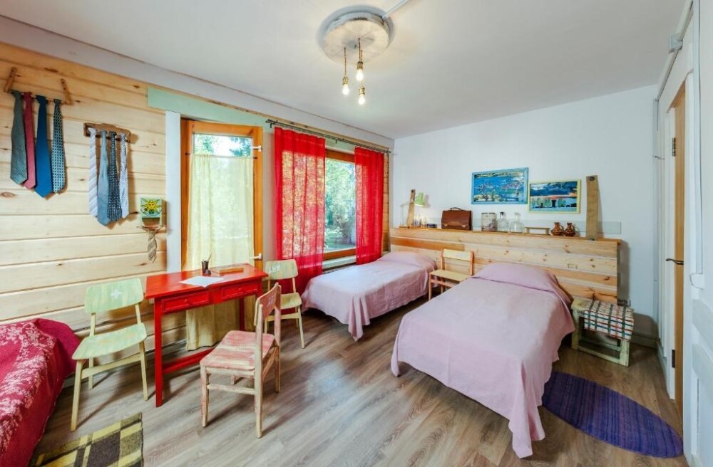 Однокомнатный комфортный номер с тремя односпальными кроватями в даче-отеле в стиле 30-х гг «Гранж Авангард». В номере - три тумбочки, три стула, стол, холодильник, телевизор, электрочайник, фен. Ванная комната с душем и туалетом.