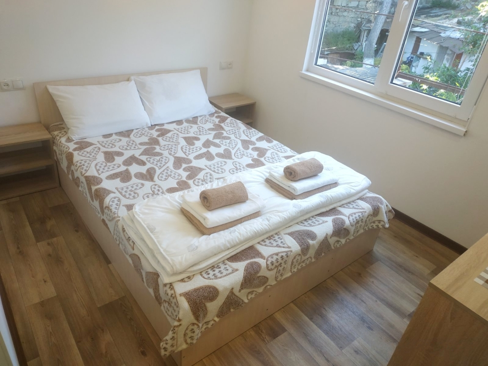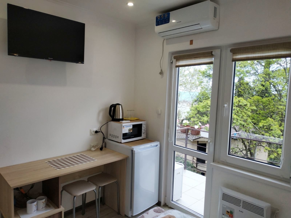 Номер расположен в самом центре Ялты, рядом с центральной набережной, до моря 5 минут ходьбы. Вся инфраструктура, развлечения и пляжи в шаговой доступности, всё рядом.