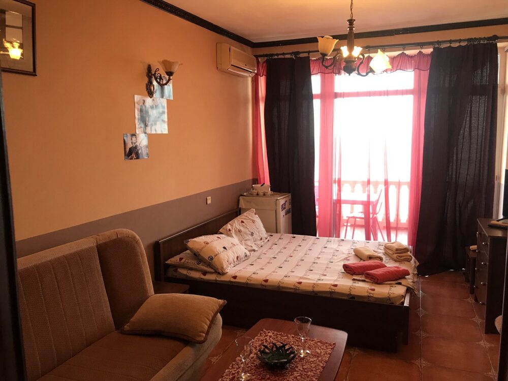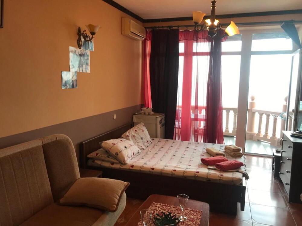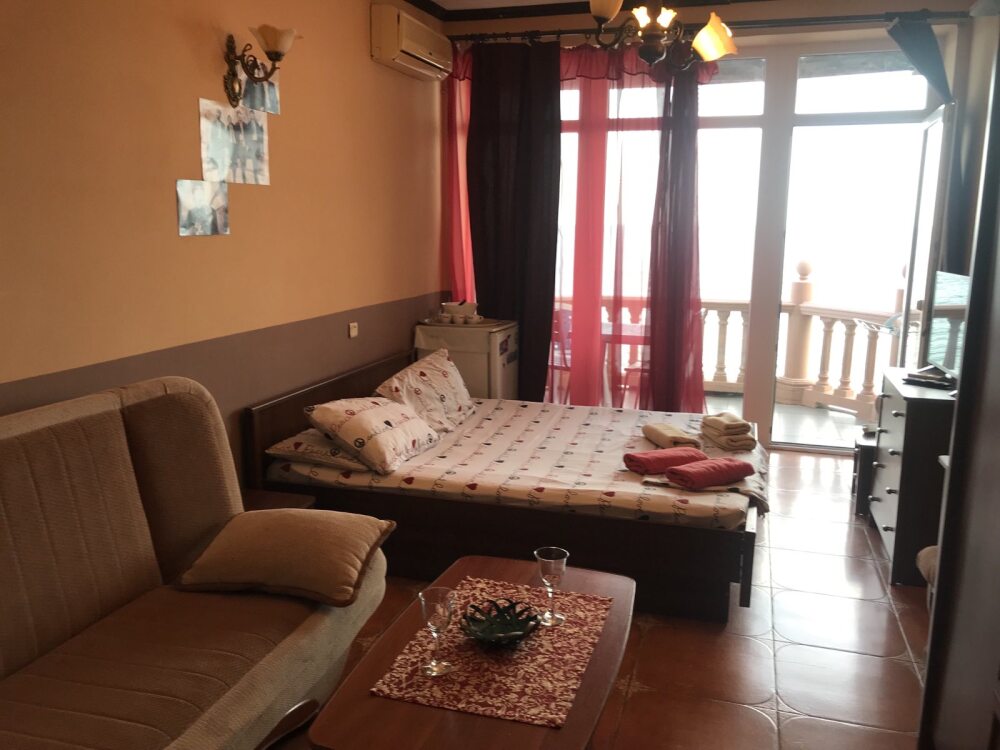 Рядом: обмен валюты, аптеки, рынок, магазины. Ближайшее кафе - в десяти метрах. Рестораны, водные развлечения, экскурсии, морские прогулки, массажи. . . Для любителей прогулок в десяти минутах ходьбы красивейший реликтовый парк дворца Княгини Гагариной и мыс Плака с панорамой побережья и горы Аю-Даг.